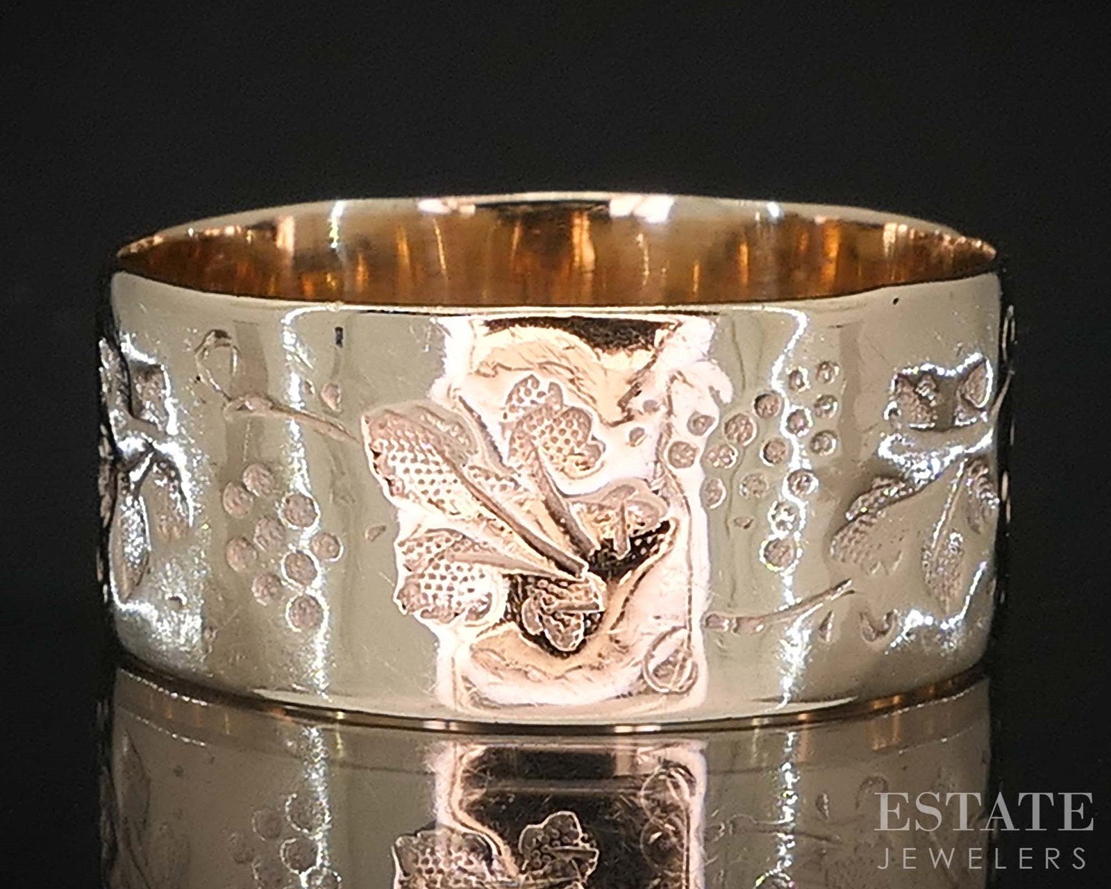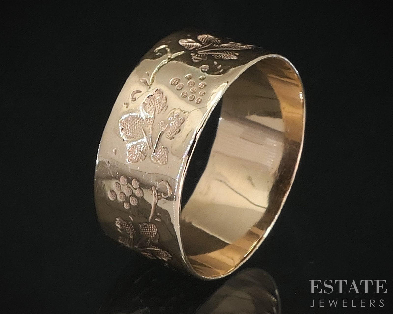 Antique Victorian 10k Yellow Gold 8mm Grape Leaf Cigar Band Ring 2.5g i19892