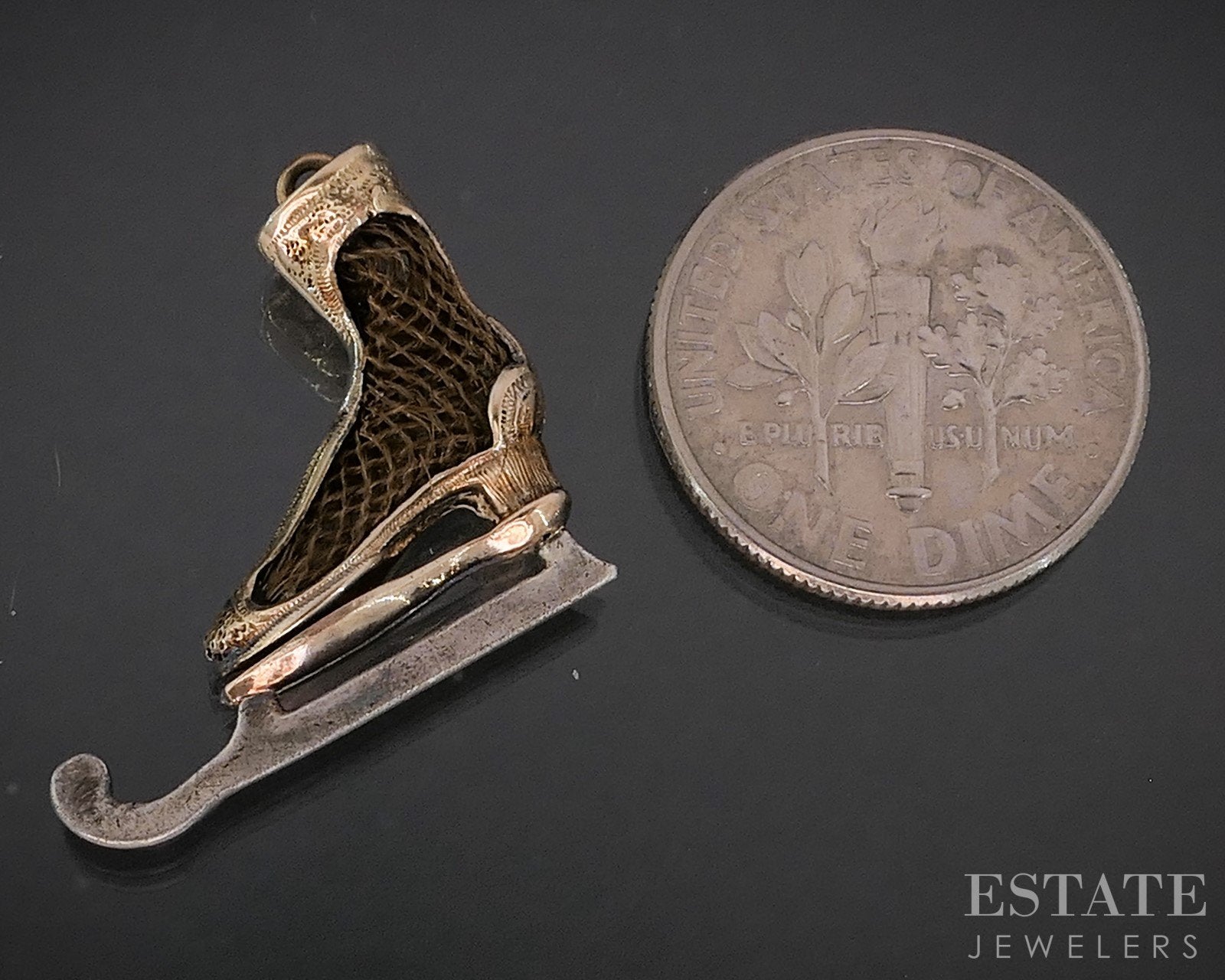 Antique Victorian 10k Yellow Gold Hair Work Ice Skate Charm 1.3g i20037