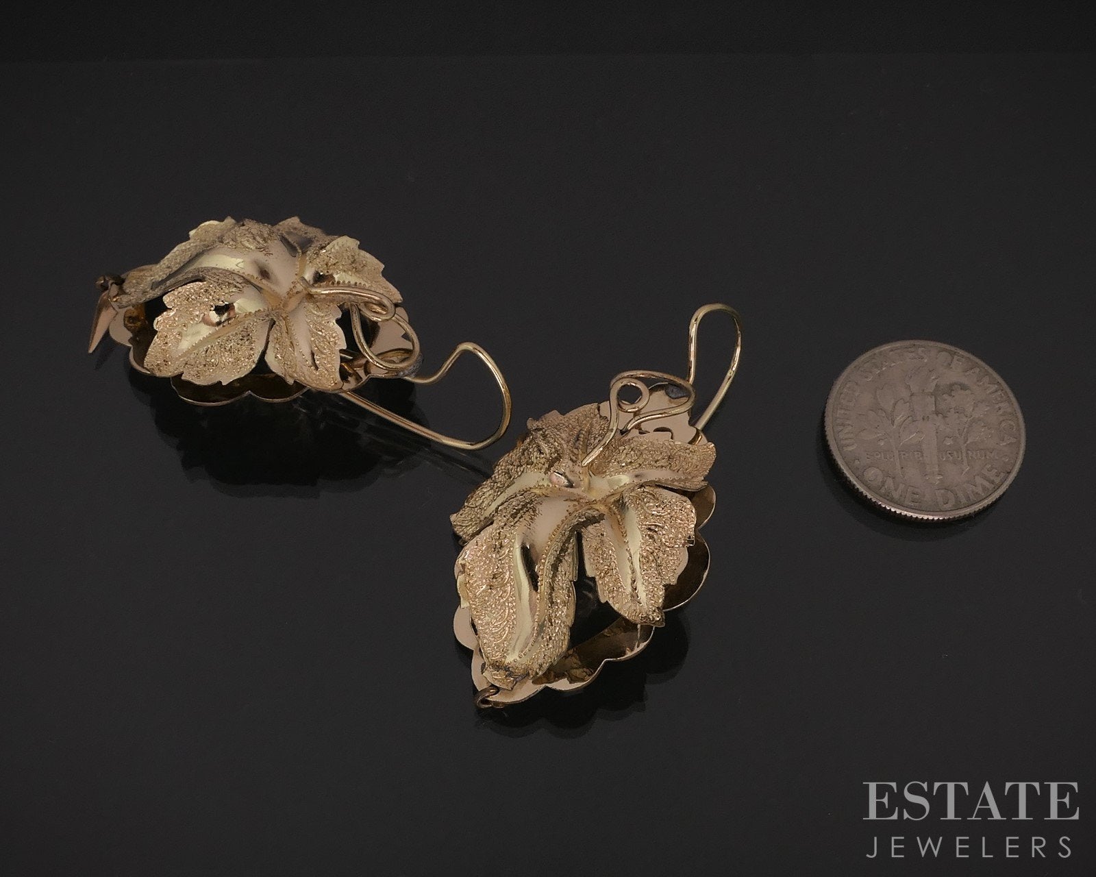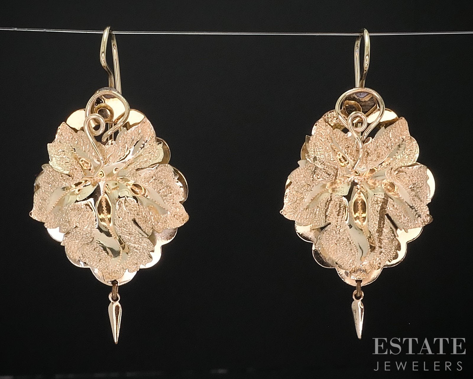 Antique Victorian 10k Yellow Gold Leafy Dangle Ladies Earrings 4.2g i18235