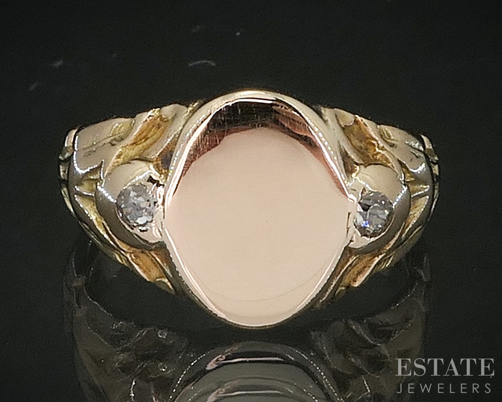 Antique Victorian 10k Yellow Gold Natural Diamond Signet Ring 4.9g i20206