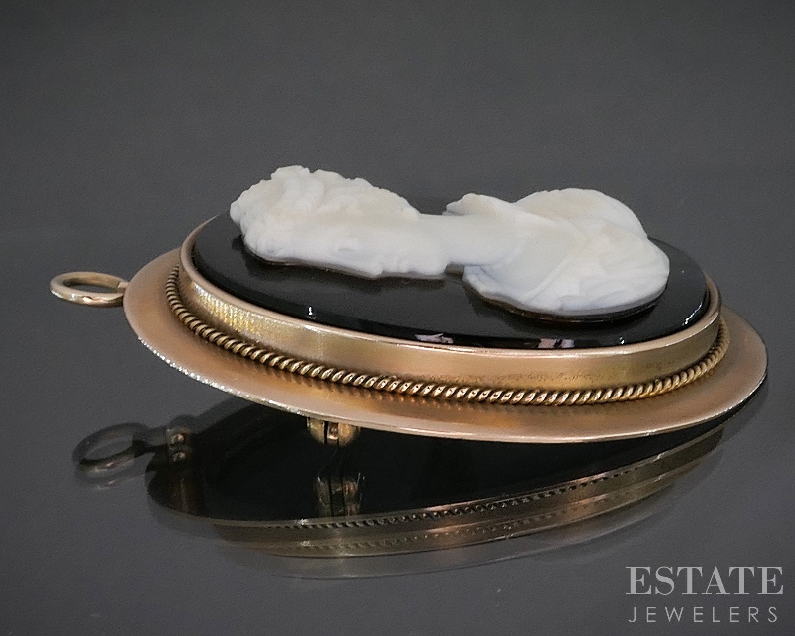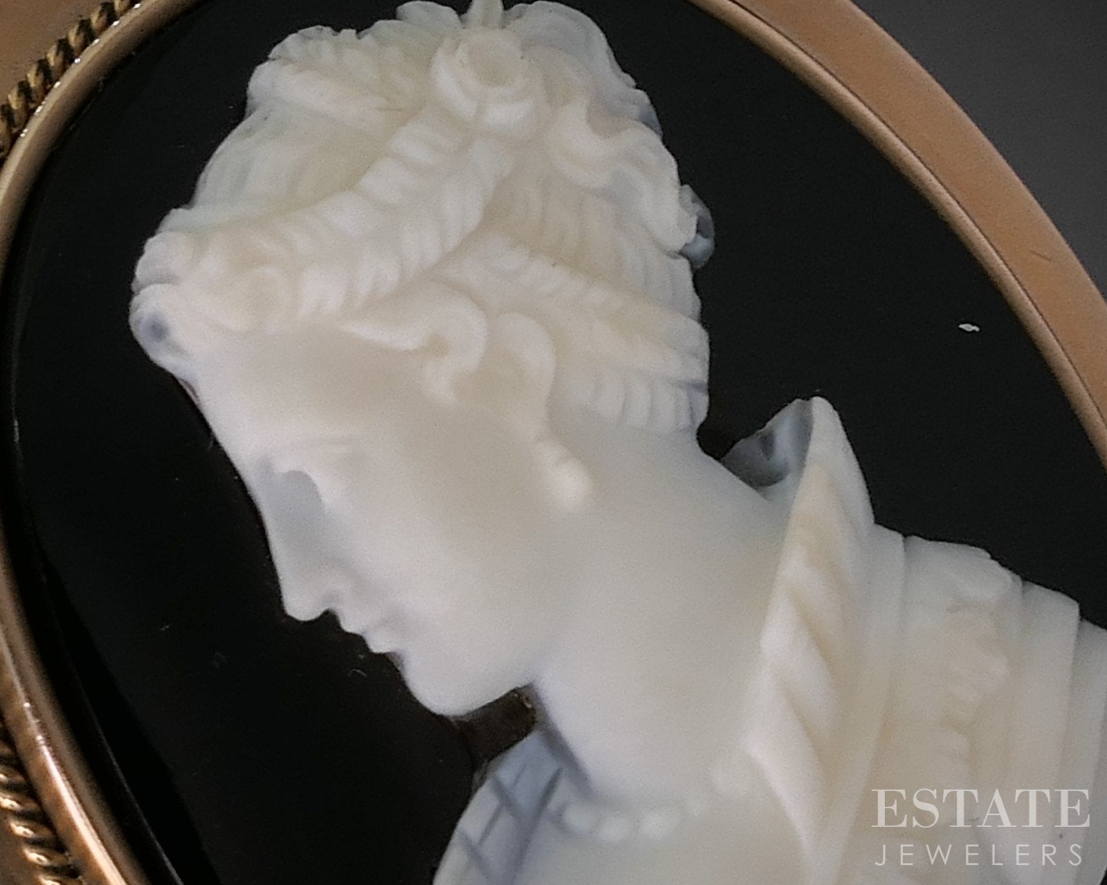 Gemstone Information: Carved natural Onyx Cameo. 36mm by 27mm.