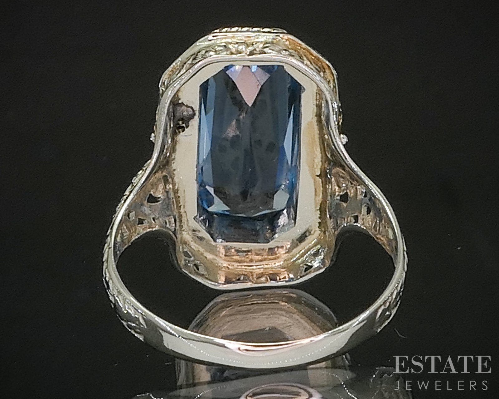 Antique Victorian 14k Tri Colored Gold Blue Topaz Filigree Ring 4.2g i20253