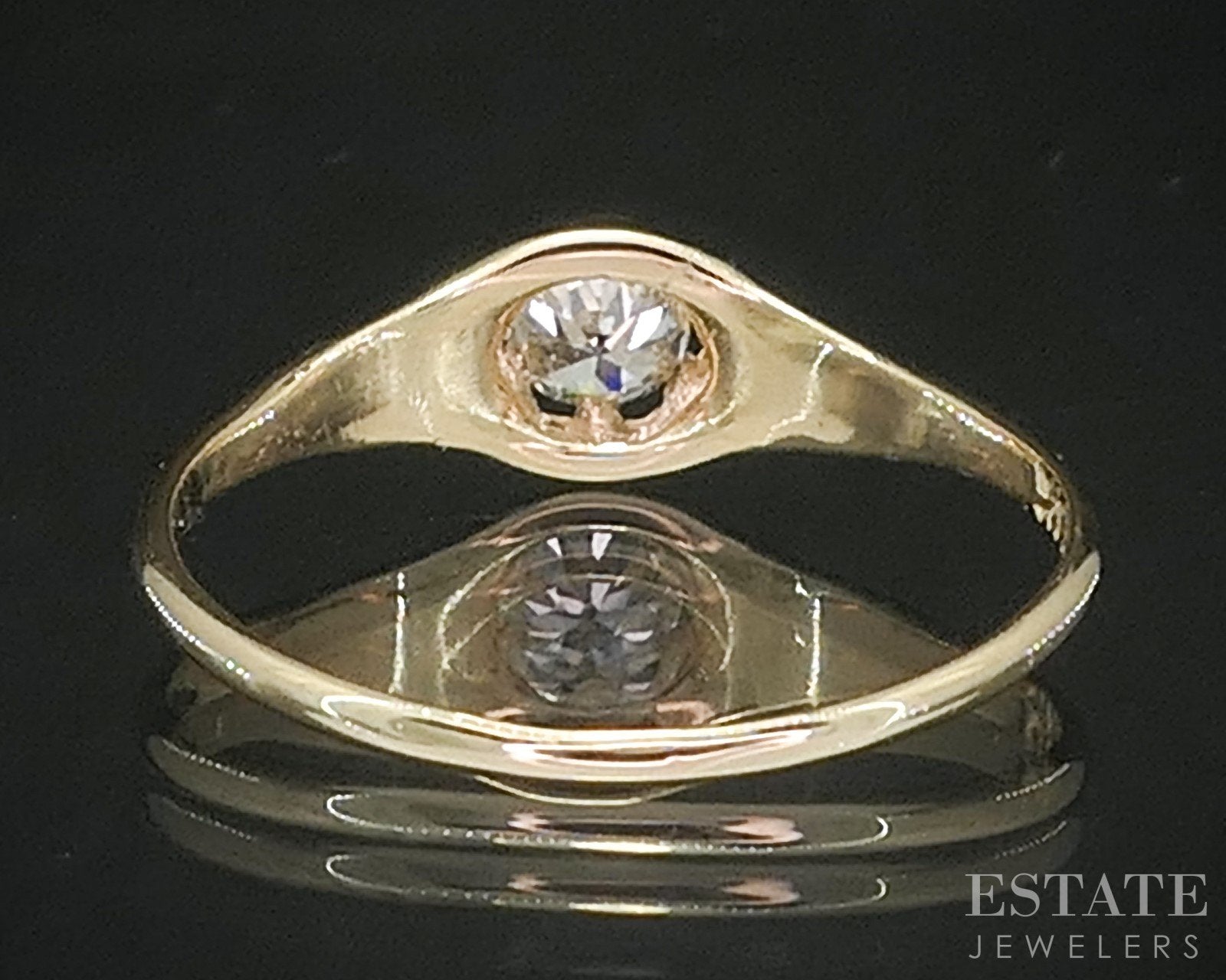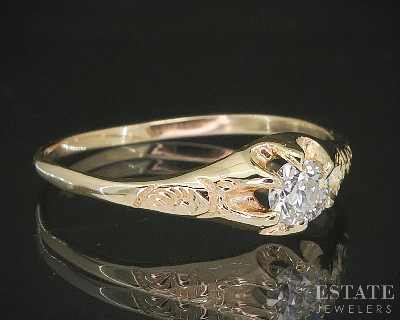 Additional Info: Timeless charm meets antique craftsmanship in this Diamond solitaire, beautifully set in a classic Belcher mounting. Crafted in yellow gold, this elegant ring features a hand-cut old mine cut Diamond — known for its large culet, soft brilliance, and romantic vintage character. The Diamond is nestled into a belcher-style setting, where the prongs are carved directly into the shank, creating a low-profile, sculpted look that blends seamlessly with the band. This setting style, popular in the late 19th and early 20th centuries, provides both security and an understated elegance that highlights the beauty of the center stone. Whether worn as an engagement ring, heirloom piece, or antique treasure, this ring is a beautiful example of enduring style and sentimental charm