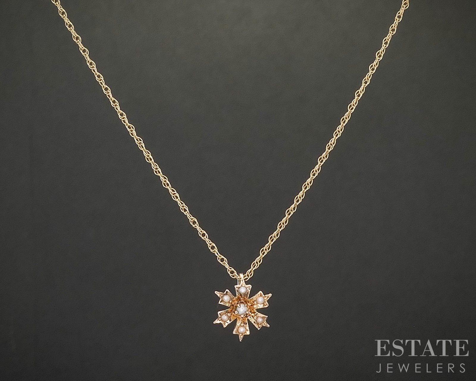 Antique Victorian 14k Yellow Gold Seed Pearl Flower Ladies Necklace 1.6g i20485