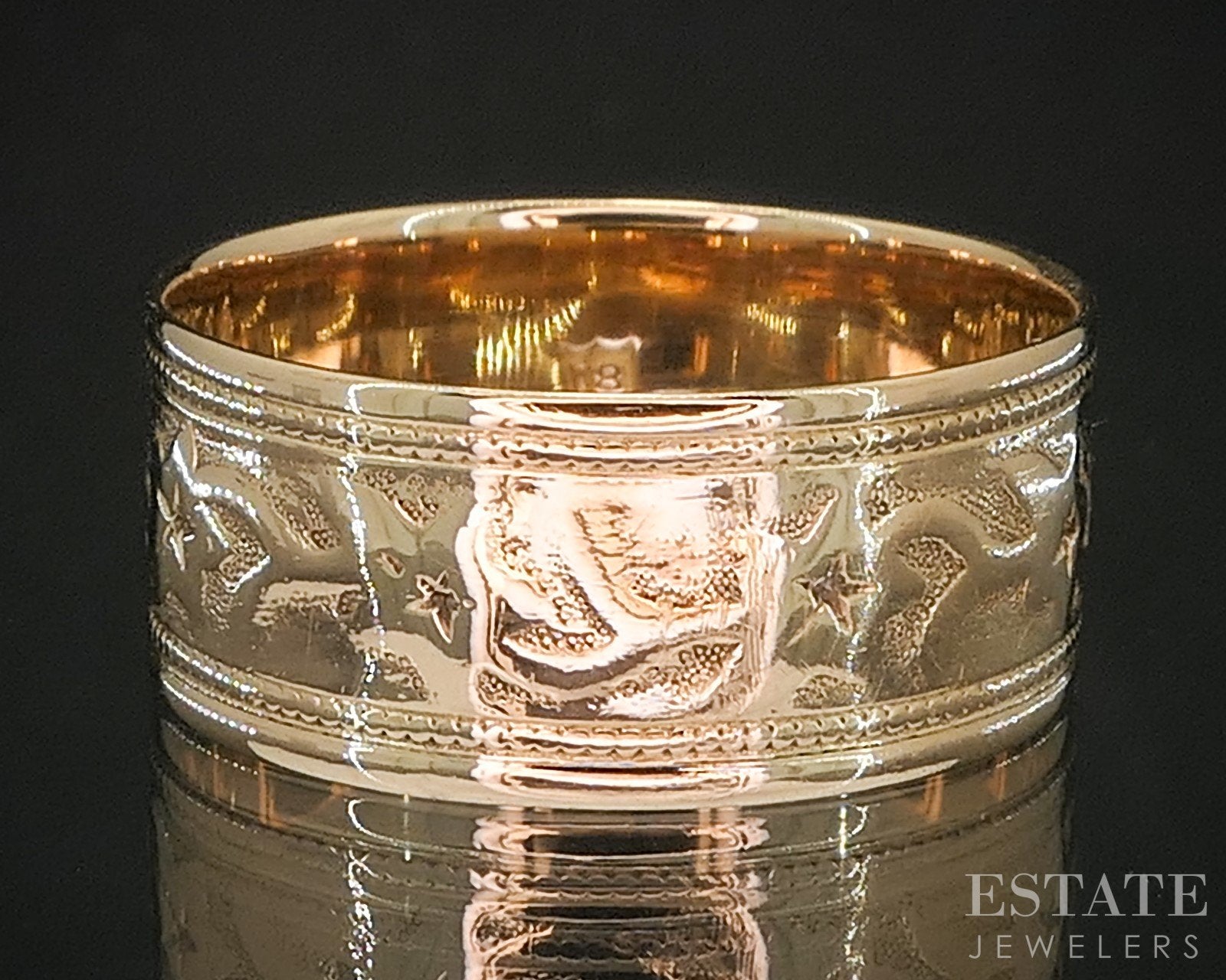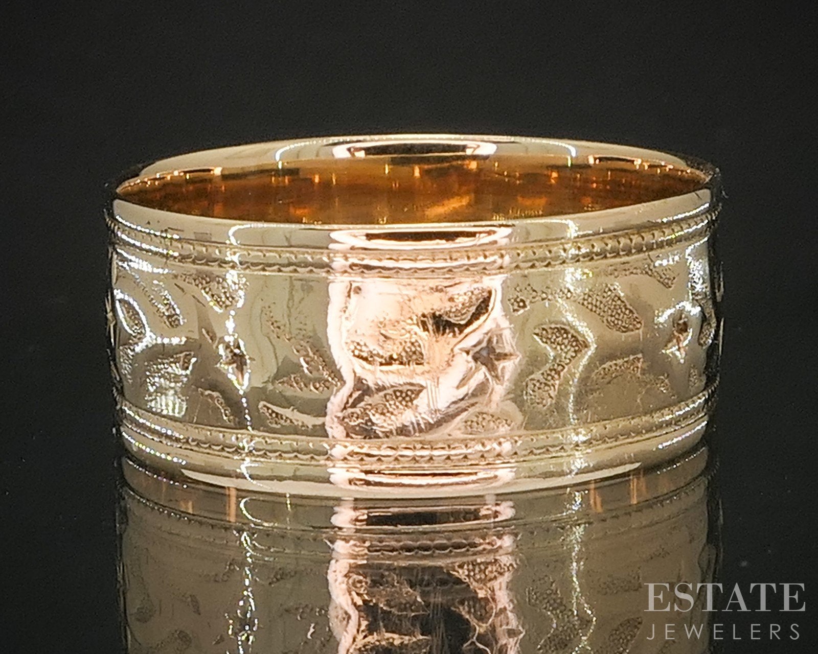 Antique Victorian 18k Yellow Gold 7.5mm Floral Vine Cigar Band Ring 3.3g i20251