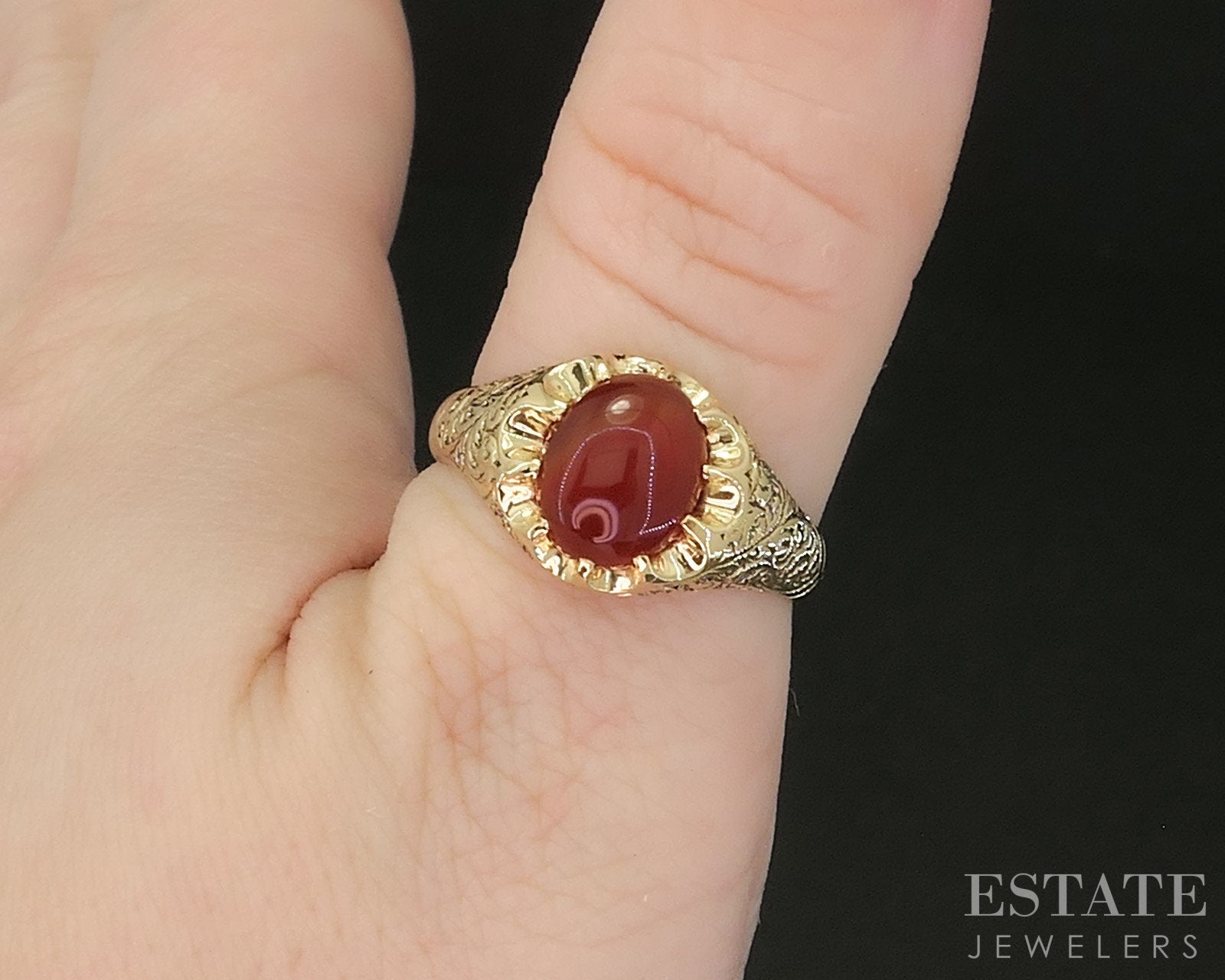 Antique Victorian 18k Yellow Gold Natural Carnelian Belcher Ring 6.3g i20270