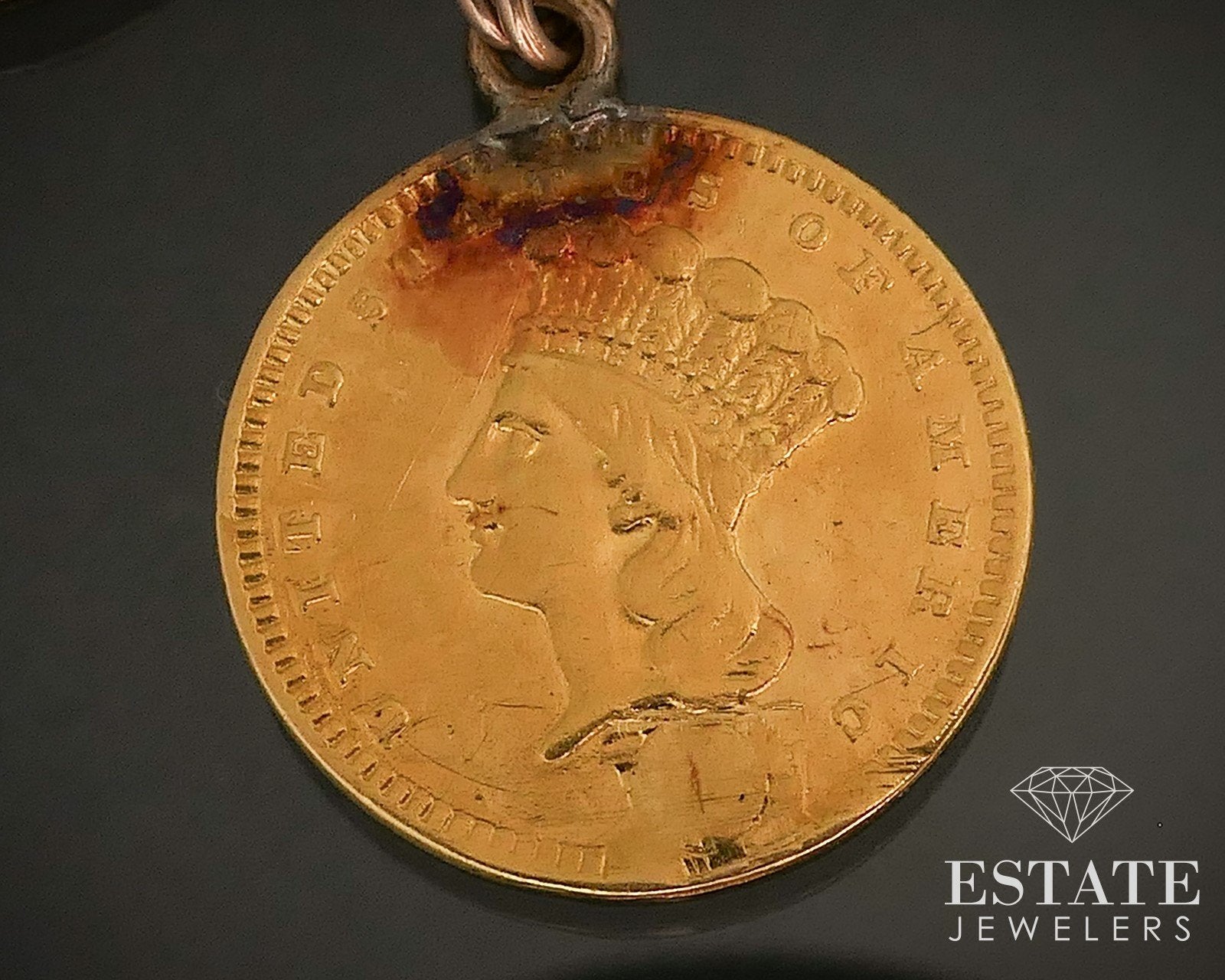 Antique Yellow Gold Love Token 1800s Liberty Coin Brooch 15.9g i17410