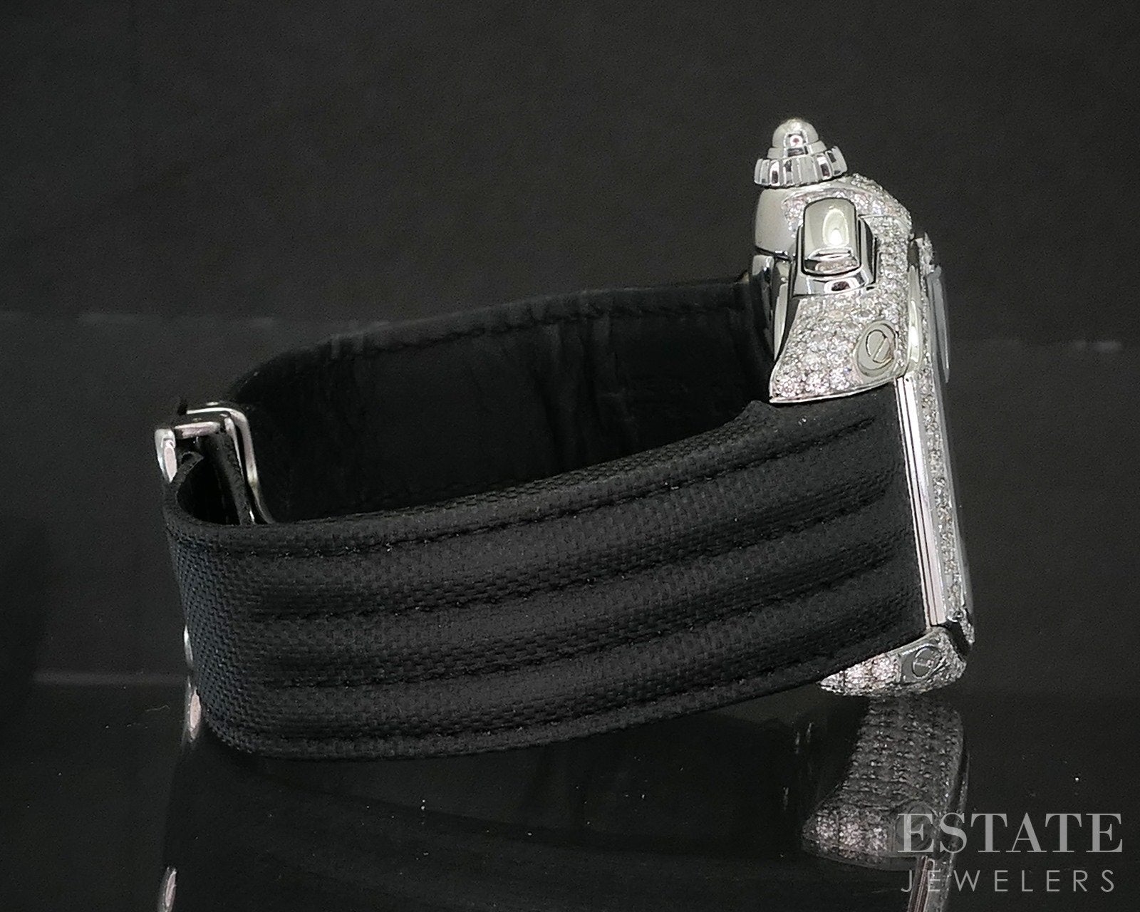 Additional Info: Bold and unmistakably Cartier, this Roadster reference 2618 makes a dazzling statement with Diamonds set across the case, elevating the model’s sporty elegance to high jewelry status. Inspired by classic automotive design, the Roadster features its signature tonneau-shaped case with smooth curves and a dynamic, contemporary profile. The fully Diamond-set case adds exceptional brilliance, contrasting beautifully with the watch’s refined dial and Cartier’s iconic Roman numerals. Powered by a reliable automatic movement, this striking timepiece blends performance with glamour, offering a dramatic expression of Cartier craftsmanship, luxury, and unmistakable style. This beauty was just serviced and comes with a brand new strap. Warranty included until 1/10/27.