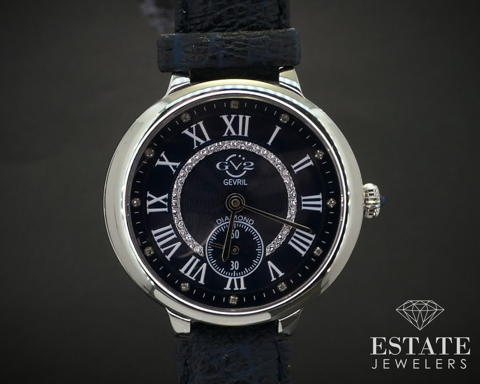 Gevril Rome GV2 12205 Blue Diamond Dial Stainless Steel Ladies Watch i17269