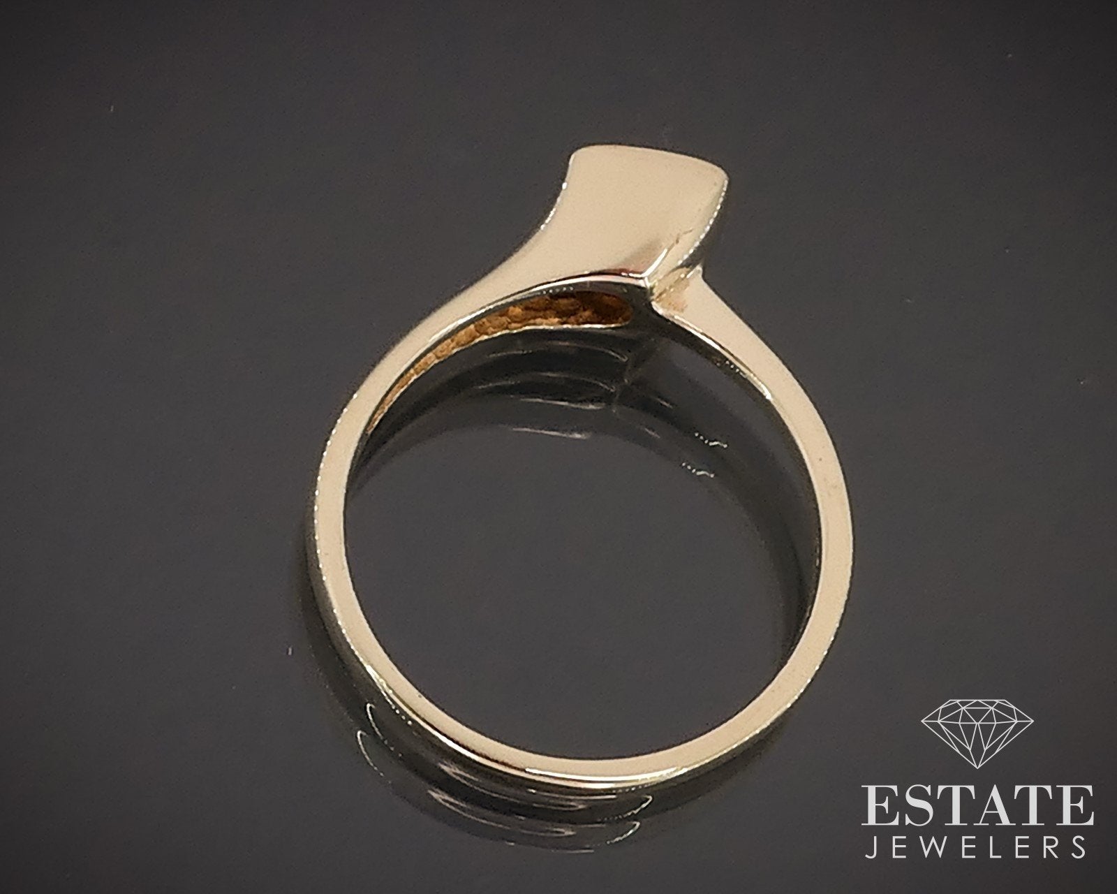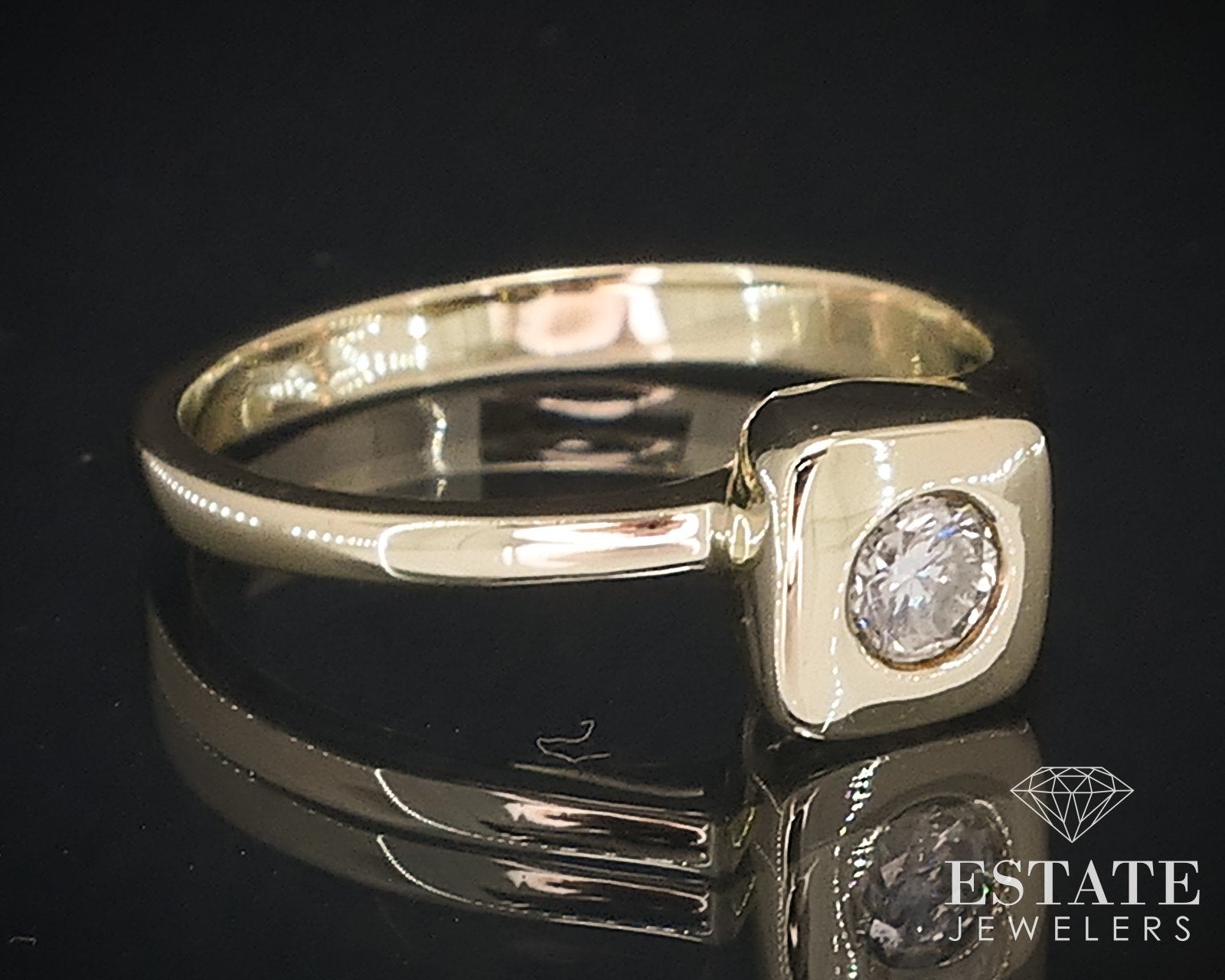 Modernist 14k Yellow Gold Round Natural .10ct Diamond Solitaire Ring 3.3g i17611