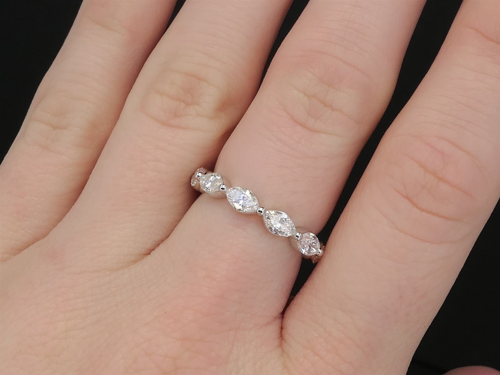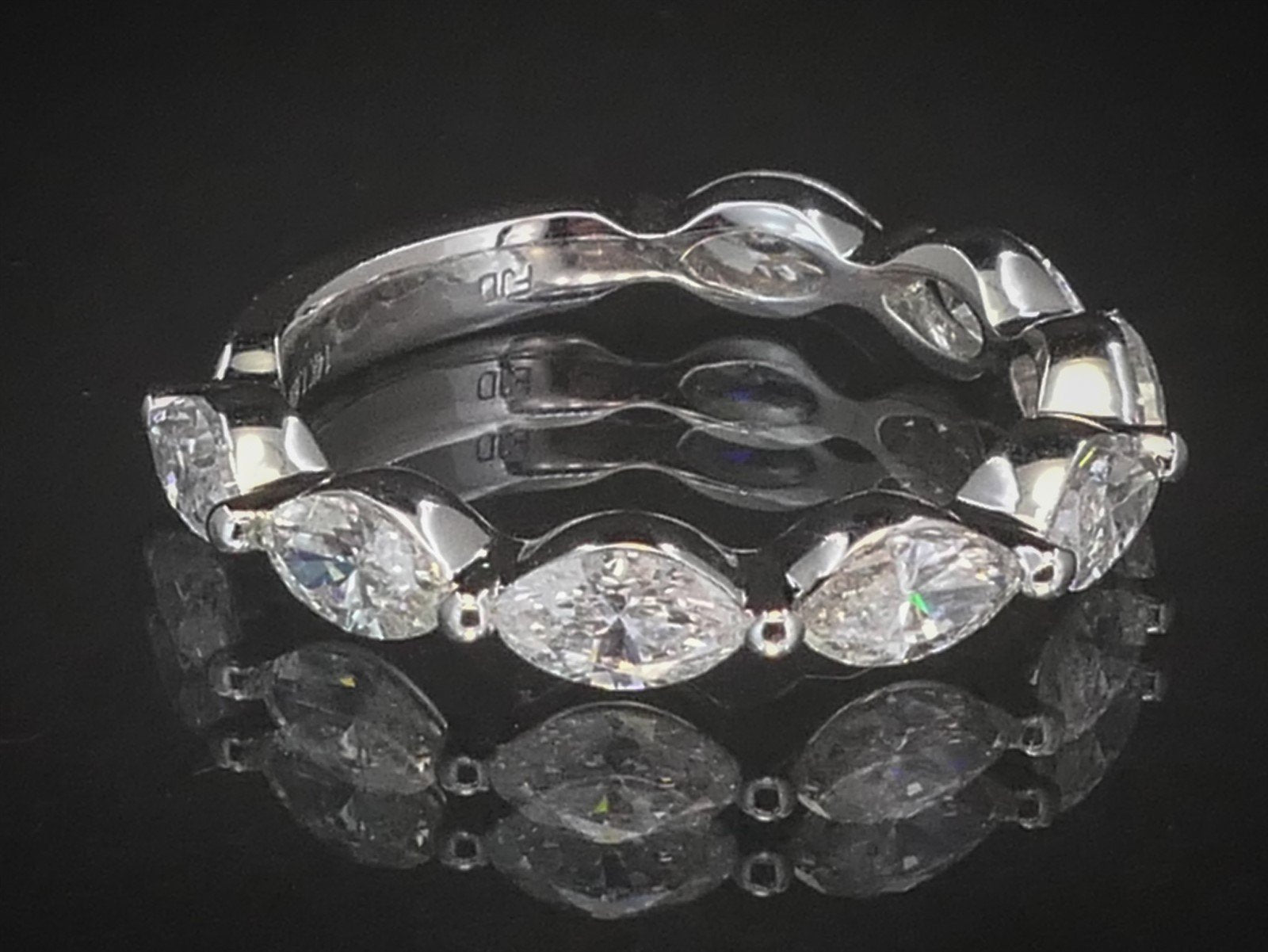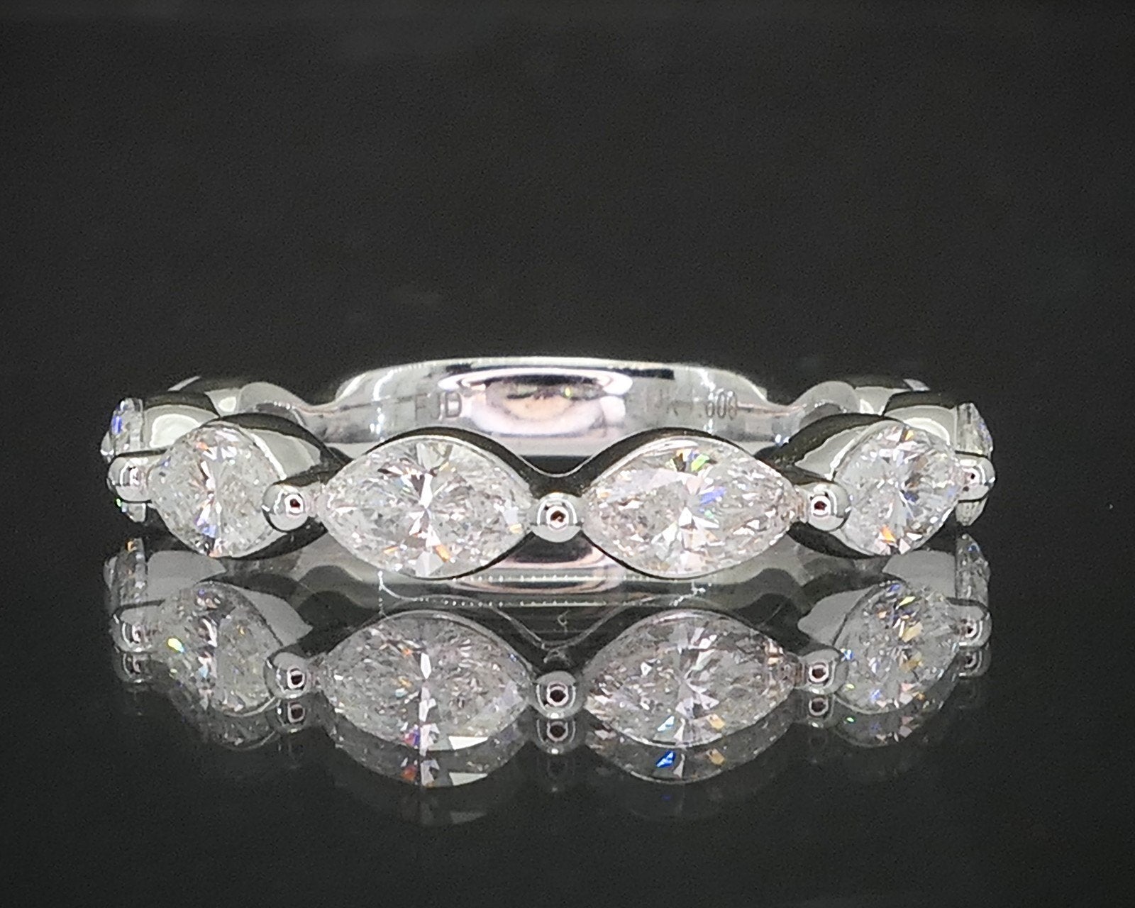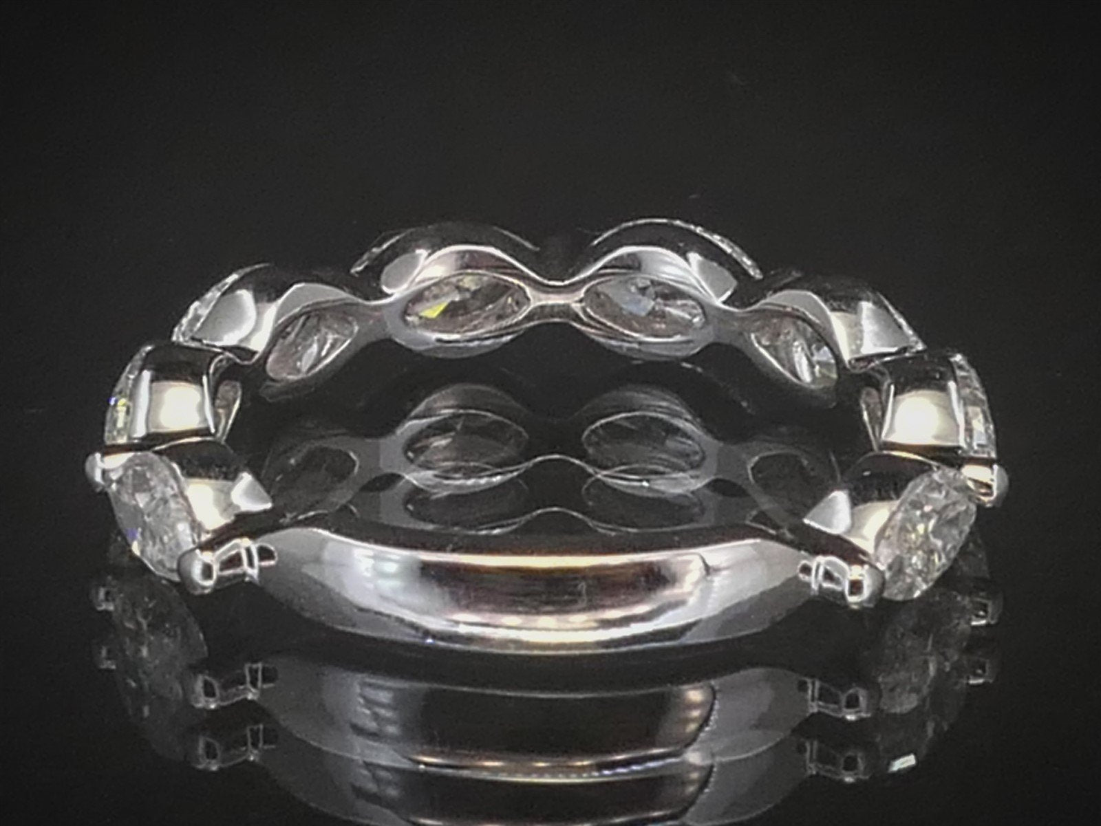 Additional Info: Graceful and distinctive, this semi-eternity band features a series of elegant marquise-cut Diamonds set in polished white gold. Each Diamond is expertly placed to create a flowing silhouette of brilliance along the band’s upper half, offering a unique twist on the classic eternity design. The marquise shape adds a touch of vintage charm, while the white gold setting enhances the Diamonds’ natural sparkle. Perfect as a wedding band, anniversary ring, or statement stacker, this piece blends timeless beauty with modern sophistication! 3mm wide.
