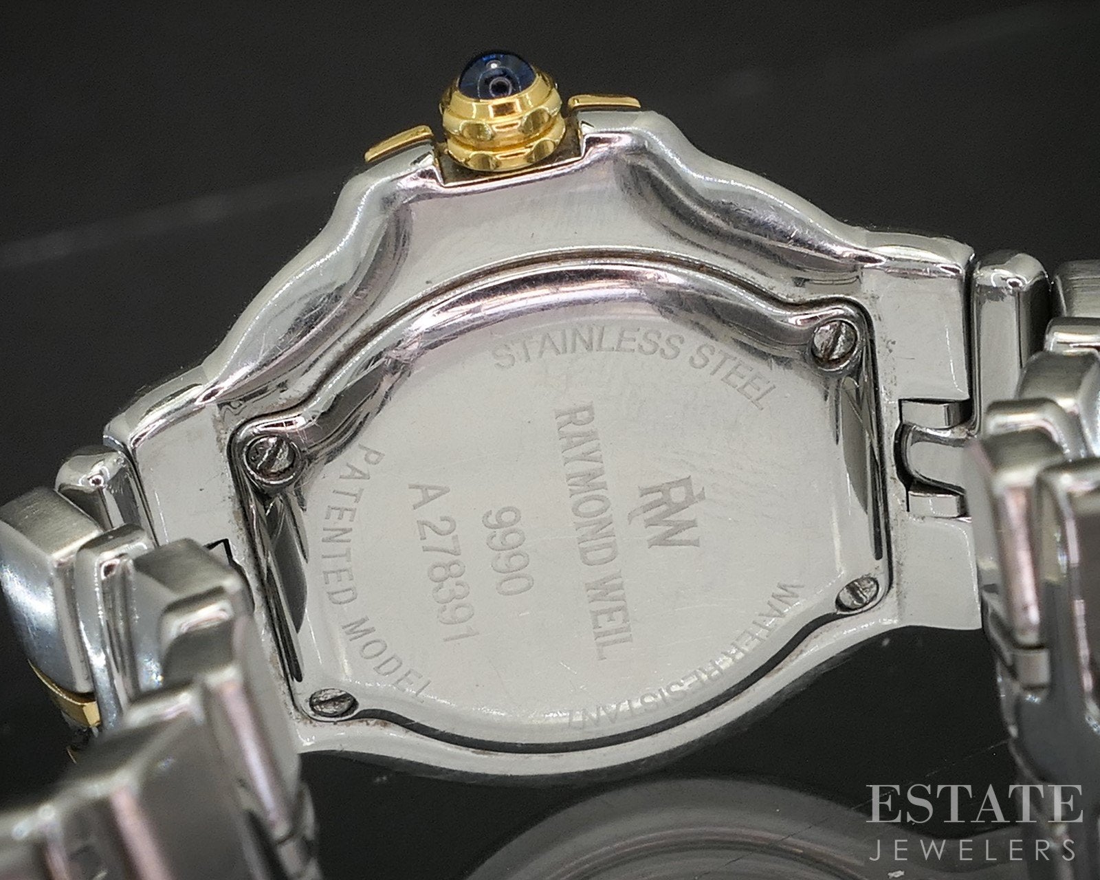 Additional Info: Stainless Raymond Weil ladies watch with a mother of pearl dial and Diamond accents. Watch has a new battery and runs.