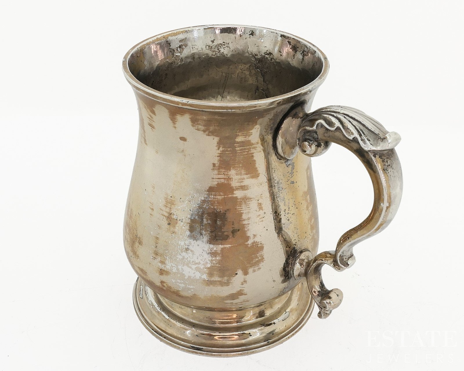 Additional Info: This rare and elegant sterling silver cup, dated 1762, is attributed to the esteemed silversmiths Charles Whipham & Charles Wright. Measuring approximately 4 inches tall, the cup features a refined classical form with a graceful handle, exemplifying the restrained elegance of 18th-century English silver. The surface bears a monogram, adding historical character and a sense of personal provenance. Beautifully proportioned and rich in period detail, this early sterling cup is both a functional object and a distinguished collectible, offering a tangible connection to Georgian-era craftsmanship and tradition