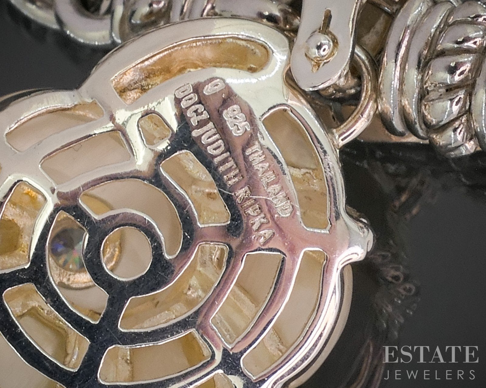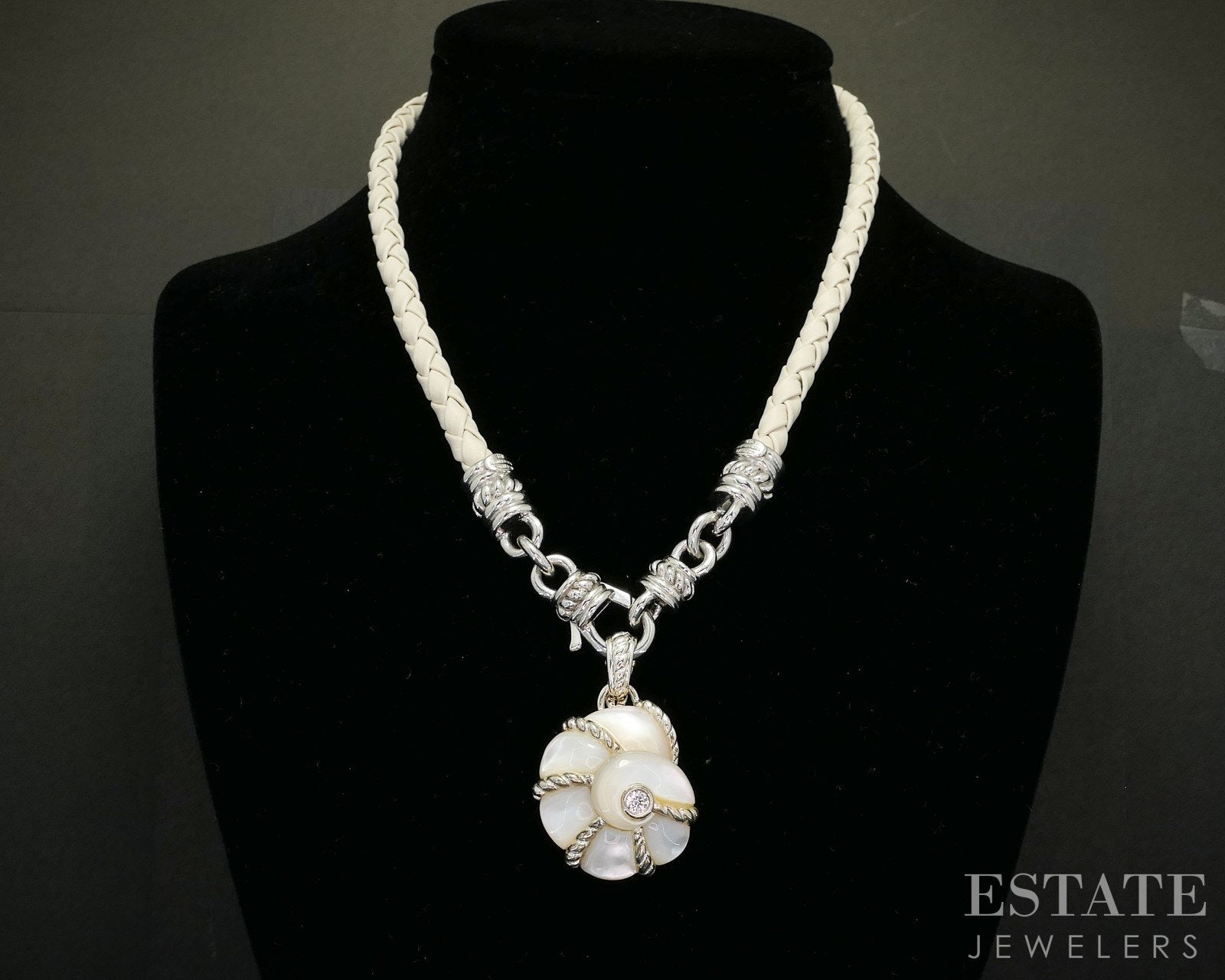 Sterling Judith Ripka Mother of Pearl CZ Seashell Leather Necklace 40g i20393