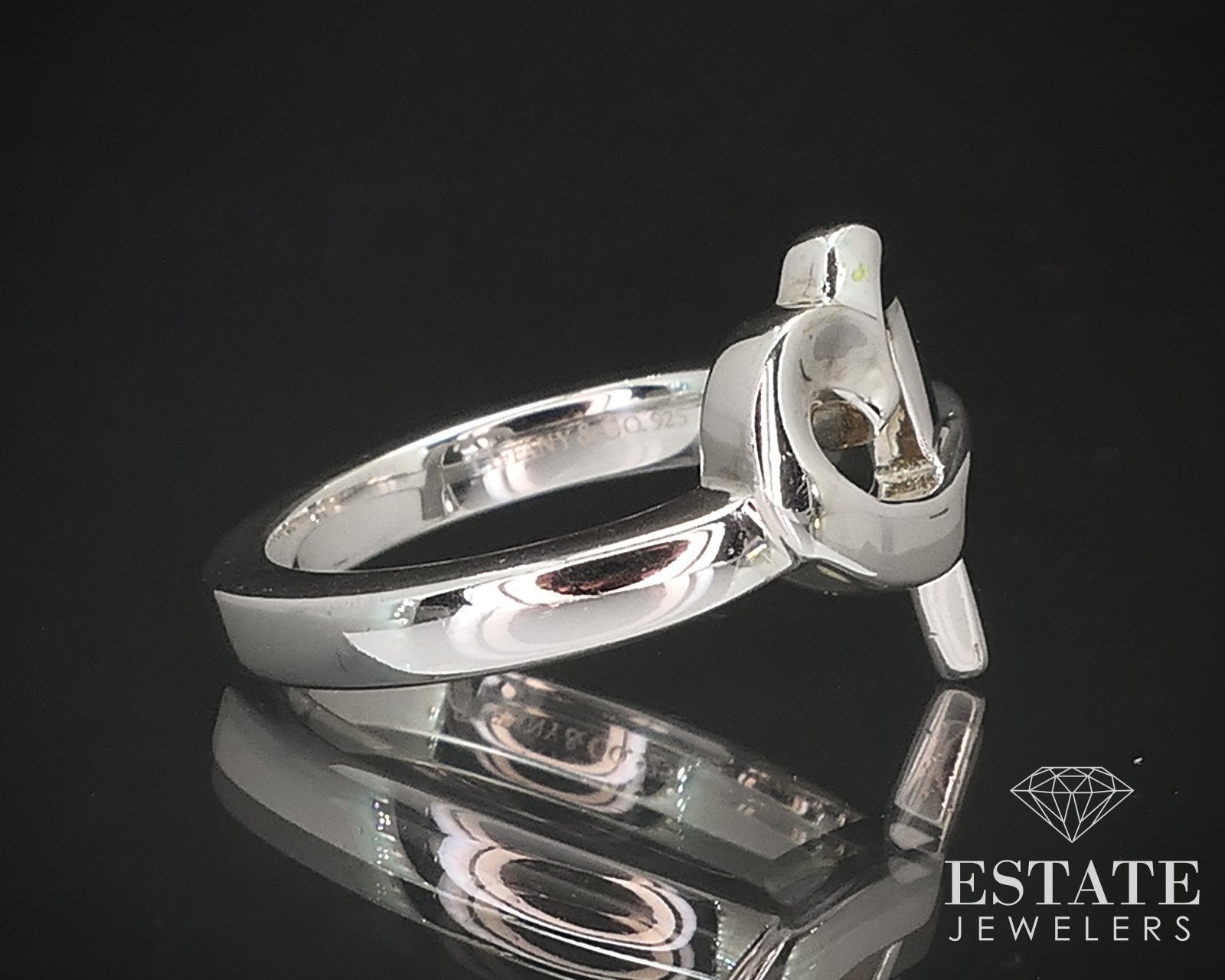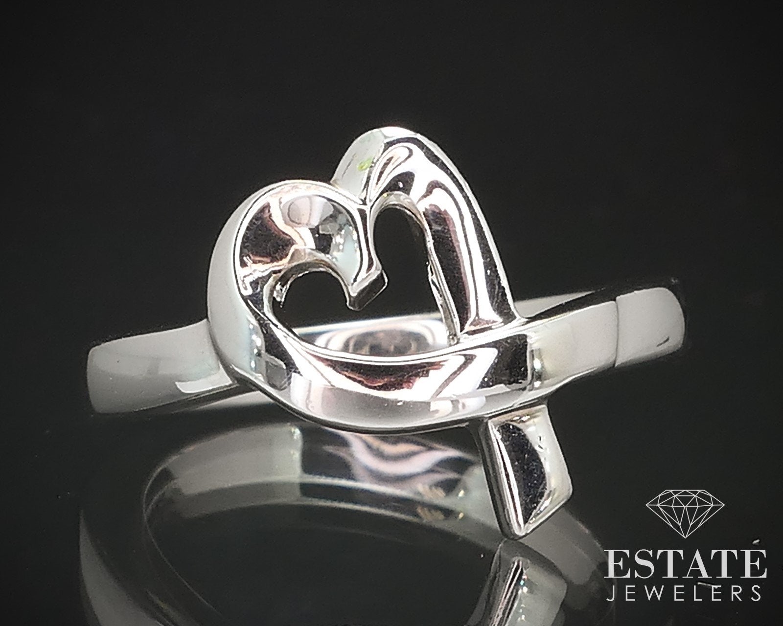 Genuine Tiffany ring with the the classic loving heart design as the face. 14mm tall front. Stamped 925 Tiffany