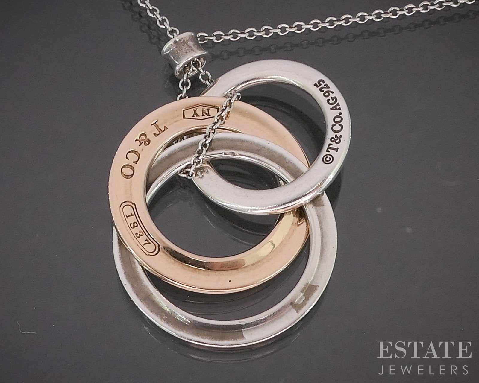Sterling Rubedo 1837 Tiffany & Co. Interlocking Triple Circle Necklace 5g p17365
