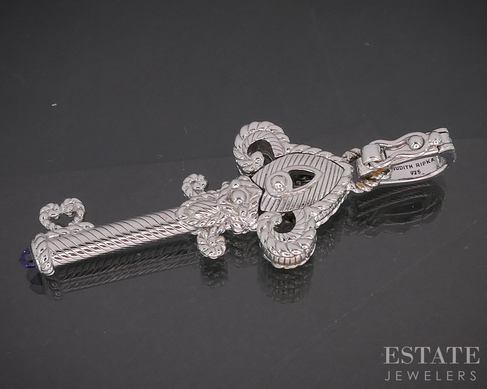Sterling Silver Judith Ripka Amethyst & CZ Skeleton Key Pendant 10.6g i20442
