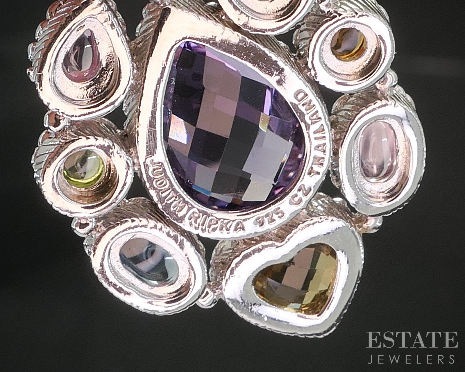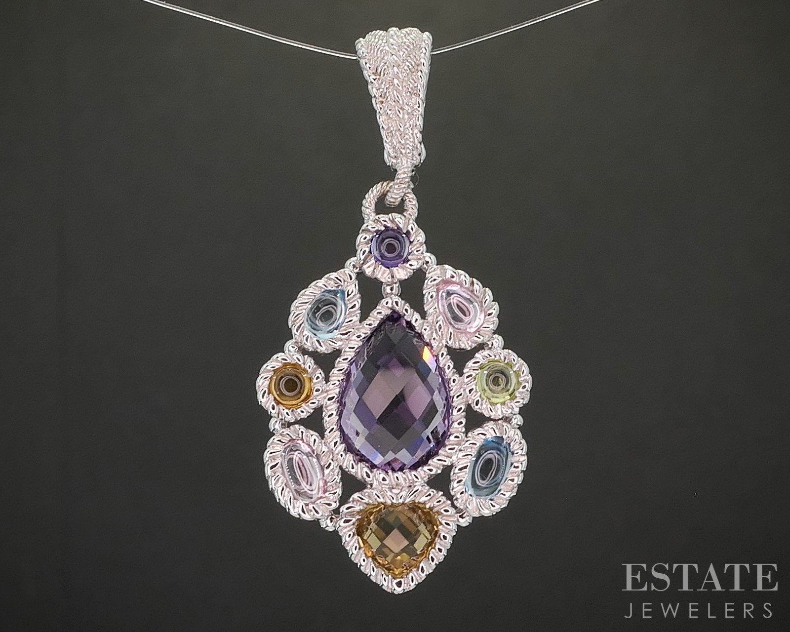 Additional Info: Unique Judith Ripka enhancer pendant with a vivid Amethyst set in the middle surrounded by Pink Quartz, Amethyst, Citrine and Aquamarines
