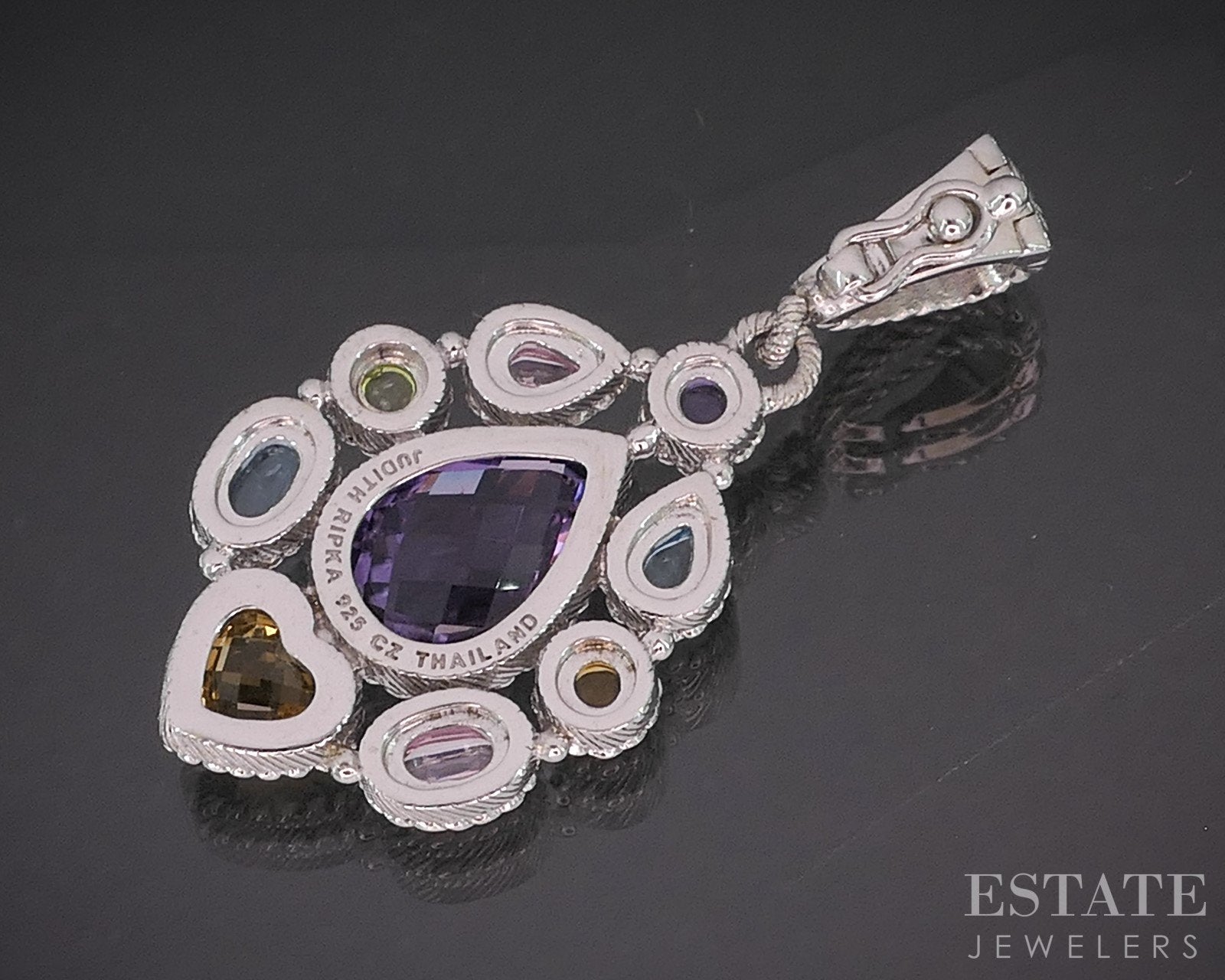 Sterling Silver Judith Ripka Multi Gem & CZ Teardrop Pendant 6.8g p19098