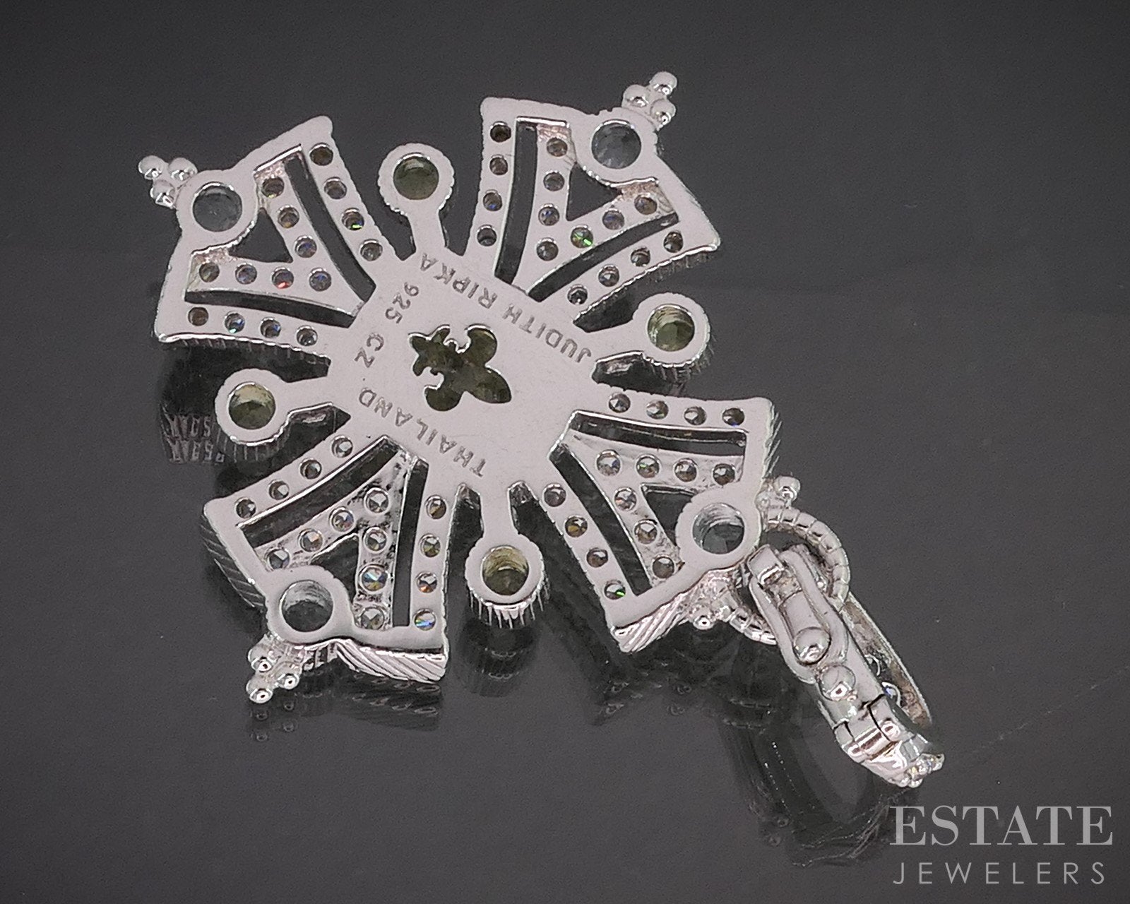 Sterling Silver Judith Ripka Multi Gem Maltese Cross Pendant 11.5g i20444