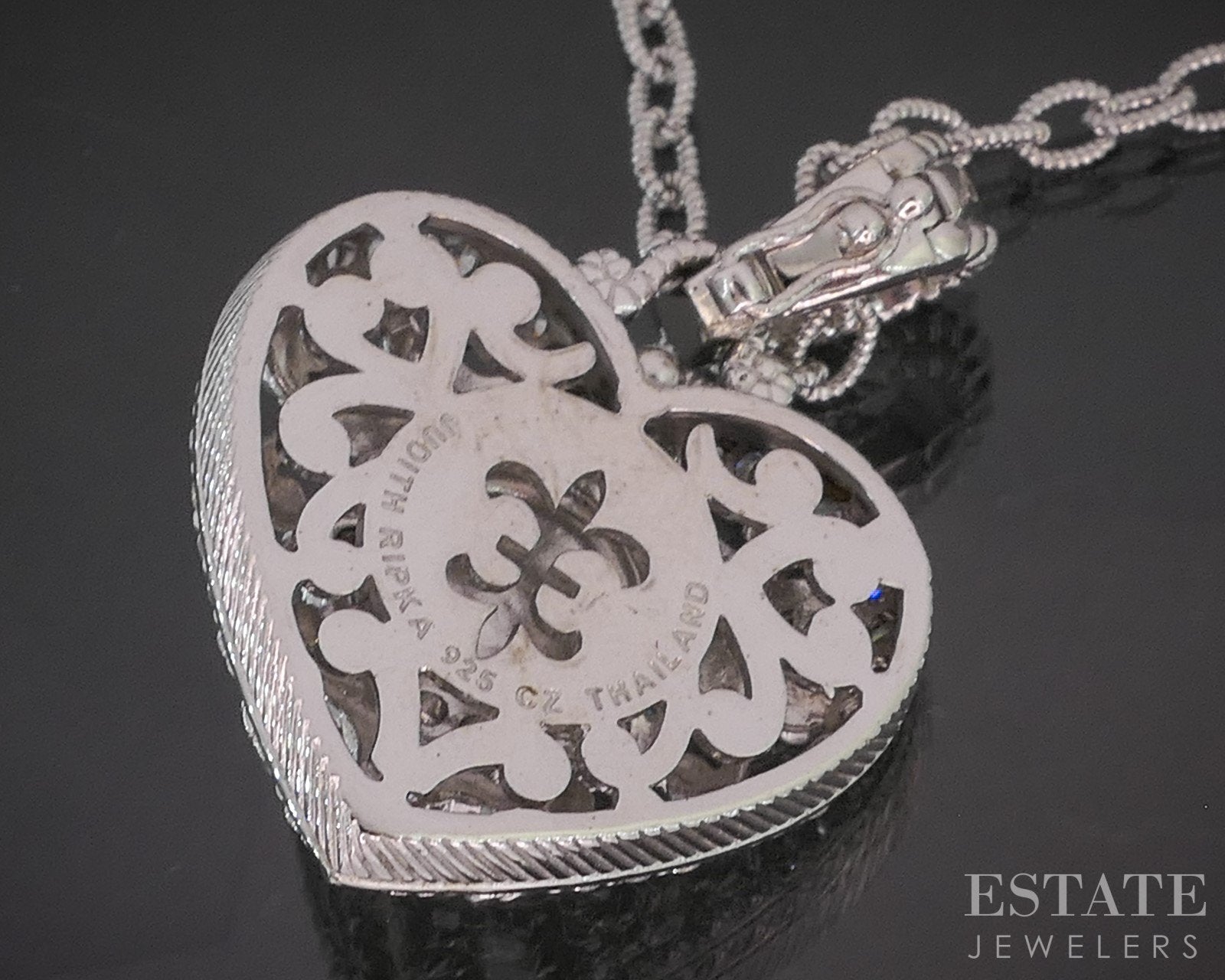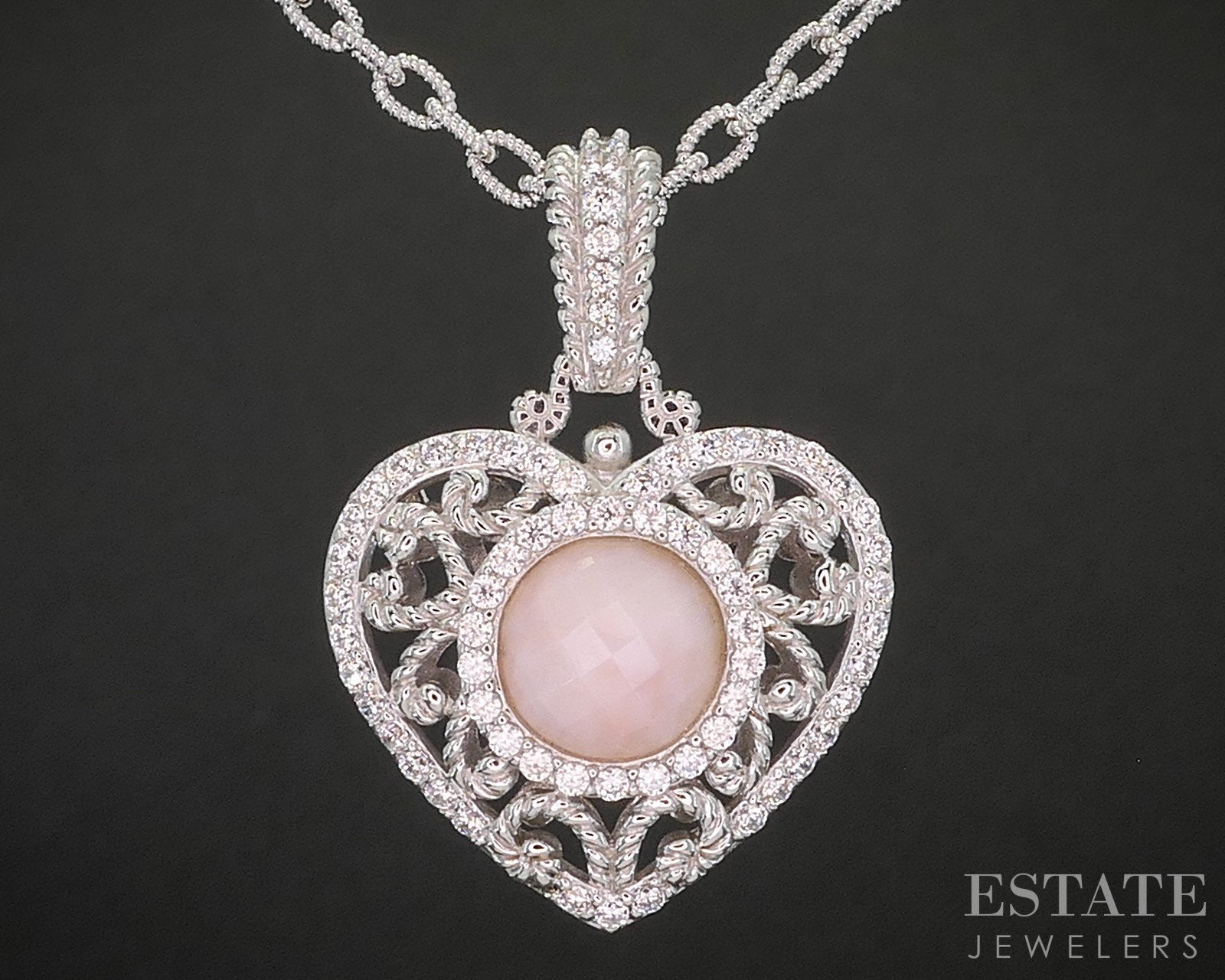 Sterling Silver Judith Ripka Natural Rose Quartz & CZ Heart Necklace 33g i20454