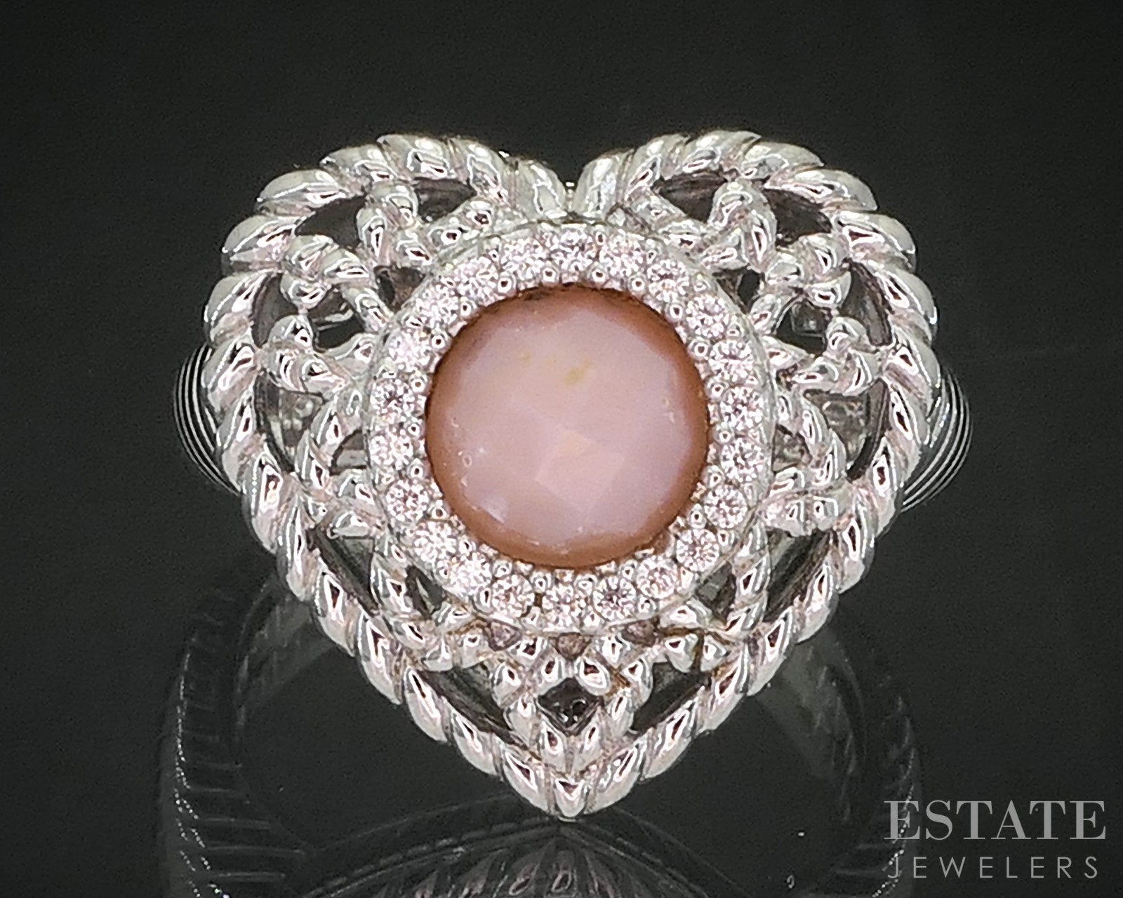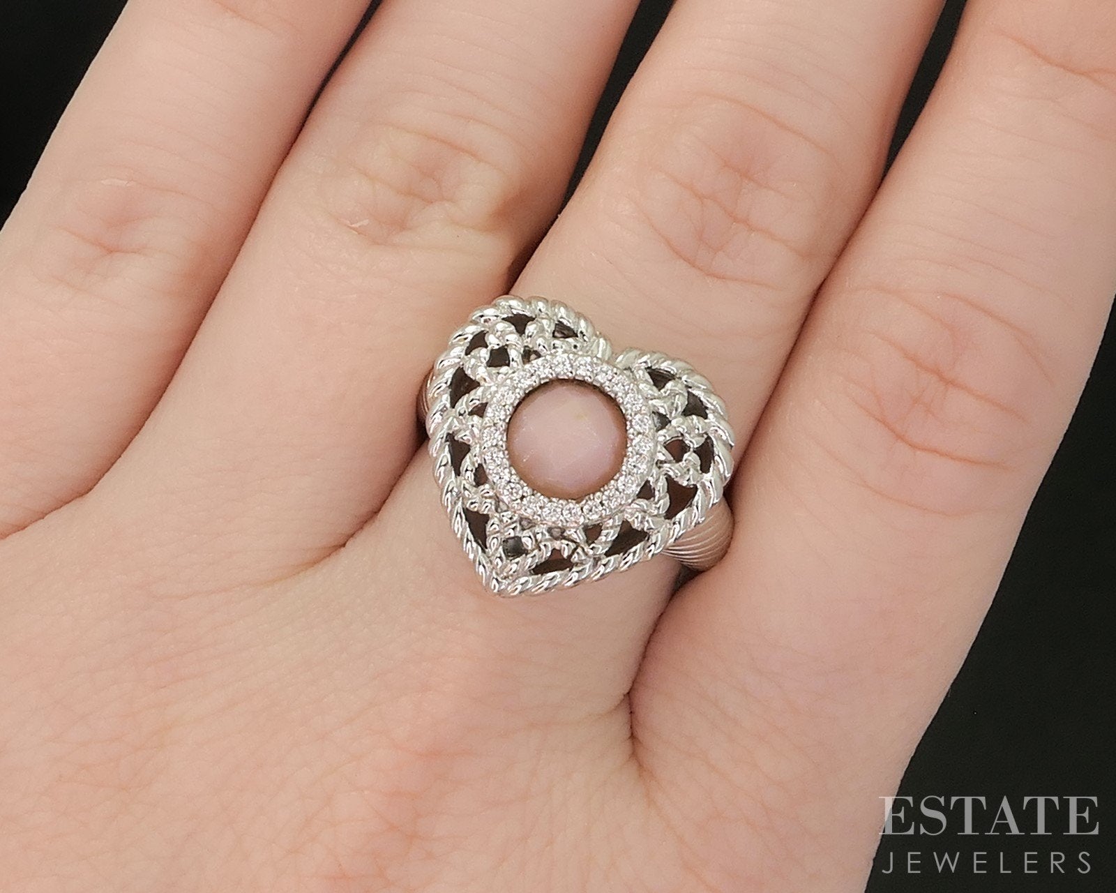 Sterling Silver Judith Ripka Natural Rose Quartz & CZ Heart Ring 9g i20460