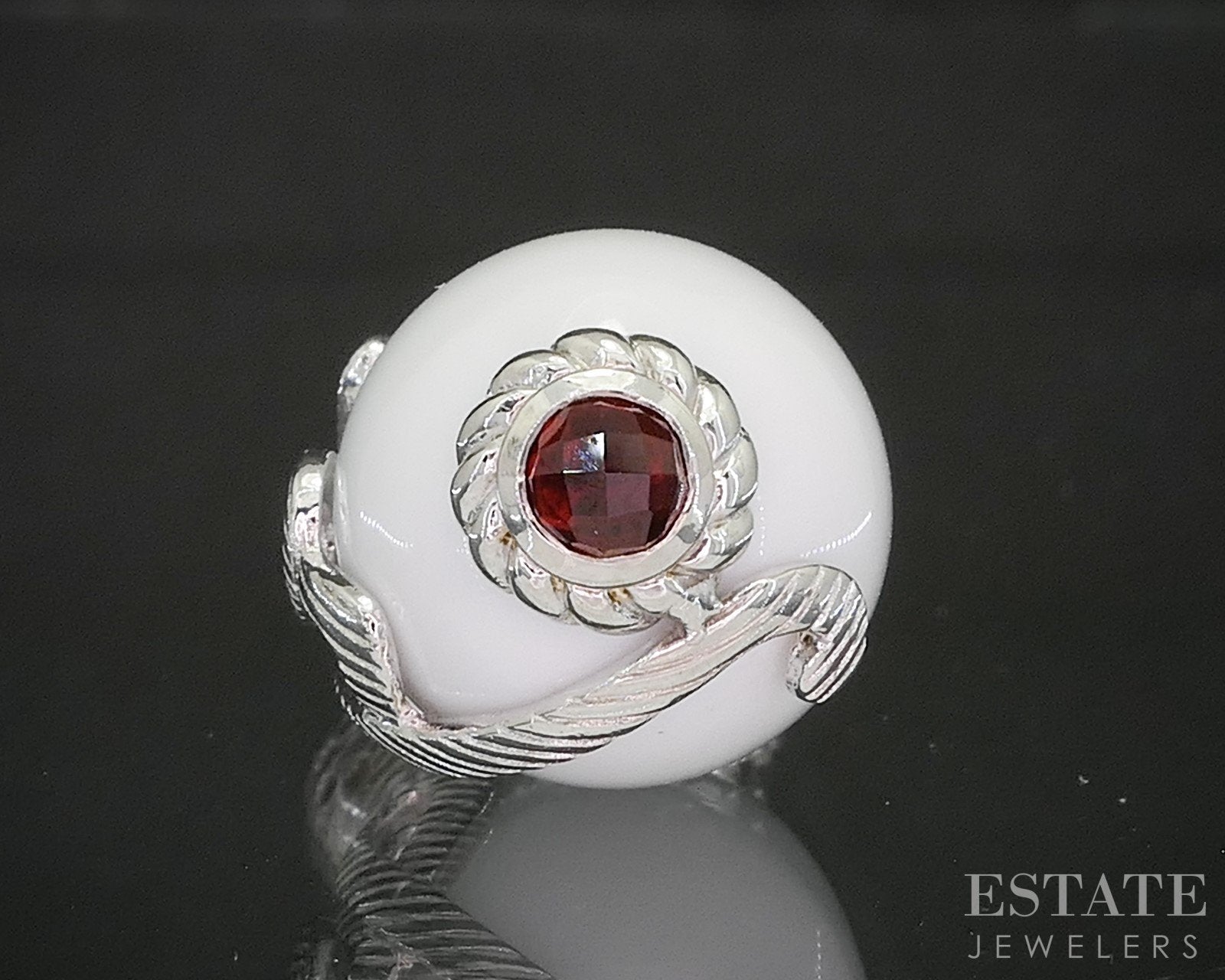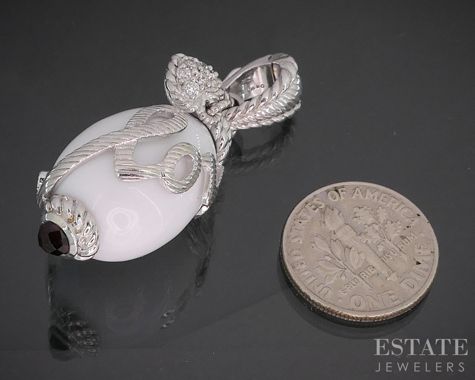 Sterling Silver Judith Ripka White Onyx Garnet CZ Egg Pendant 13.1g p18389