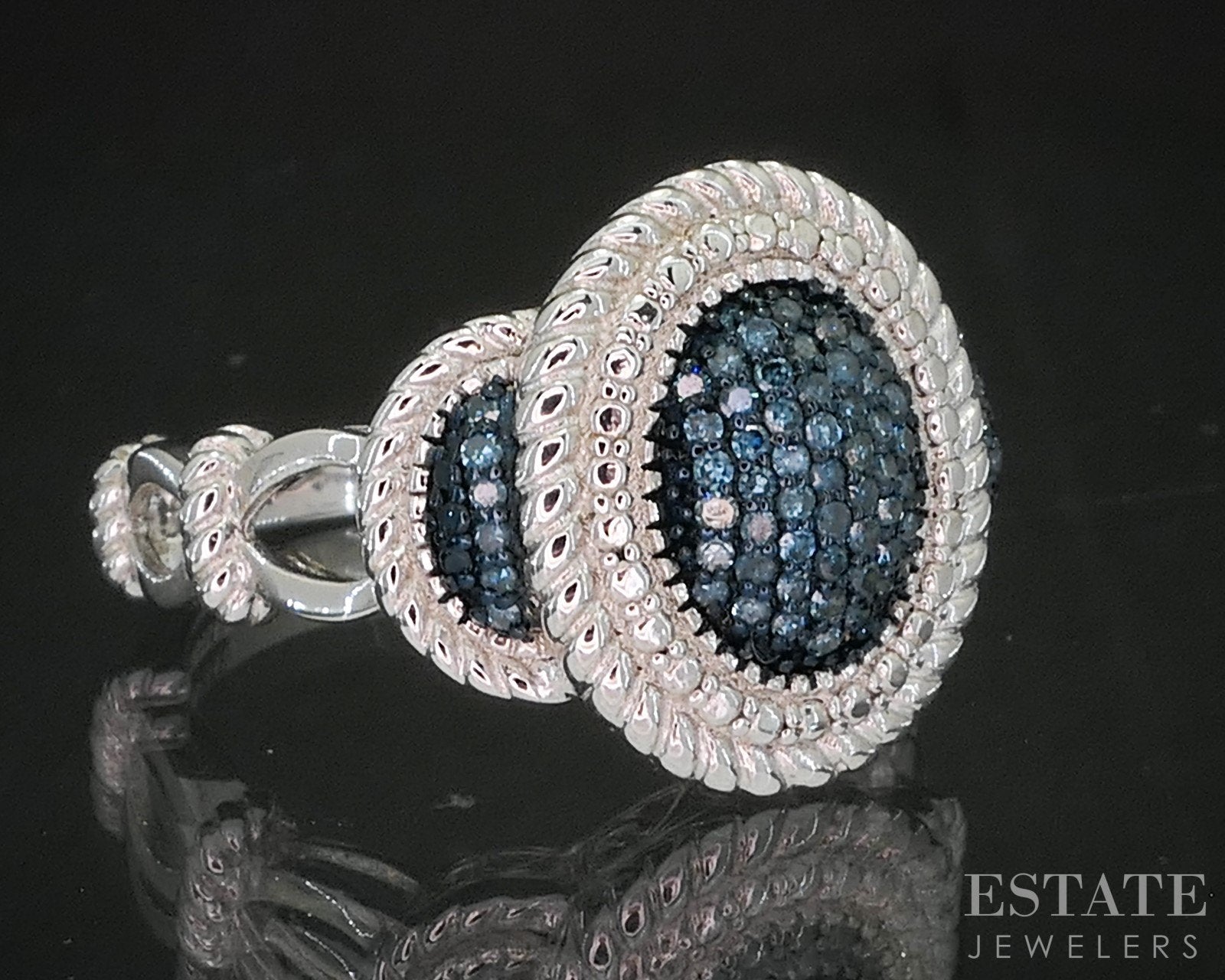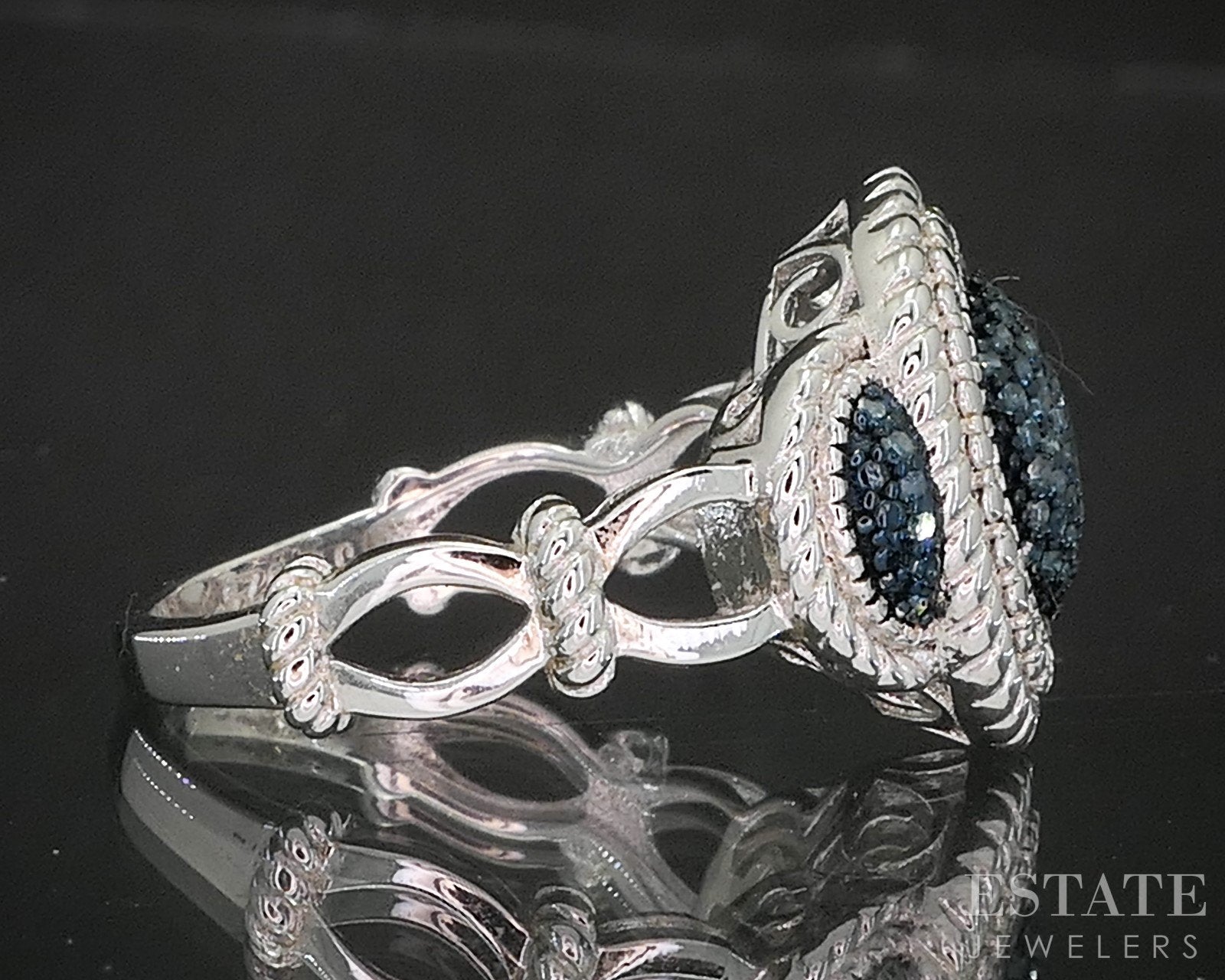 Sterling Silver Natural Blue Diamond Cluster Ladies Ring 5.4g p17242