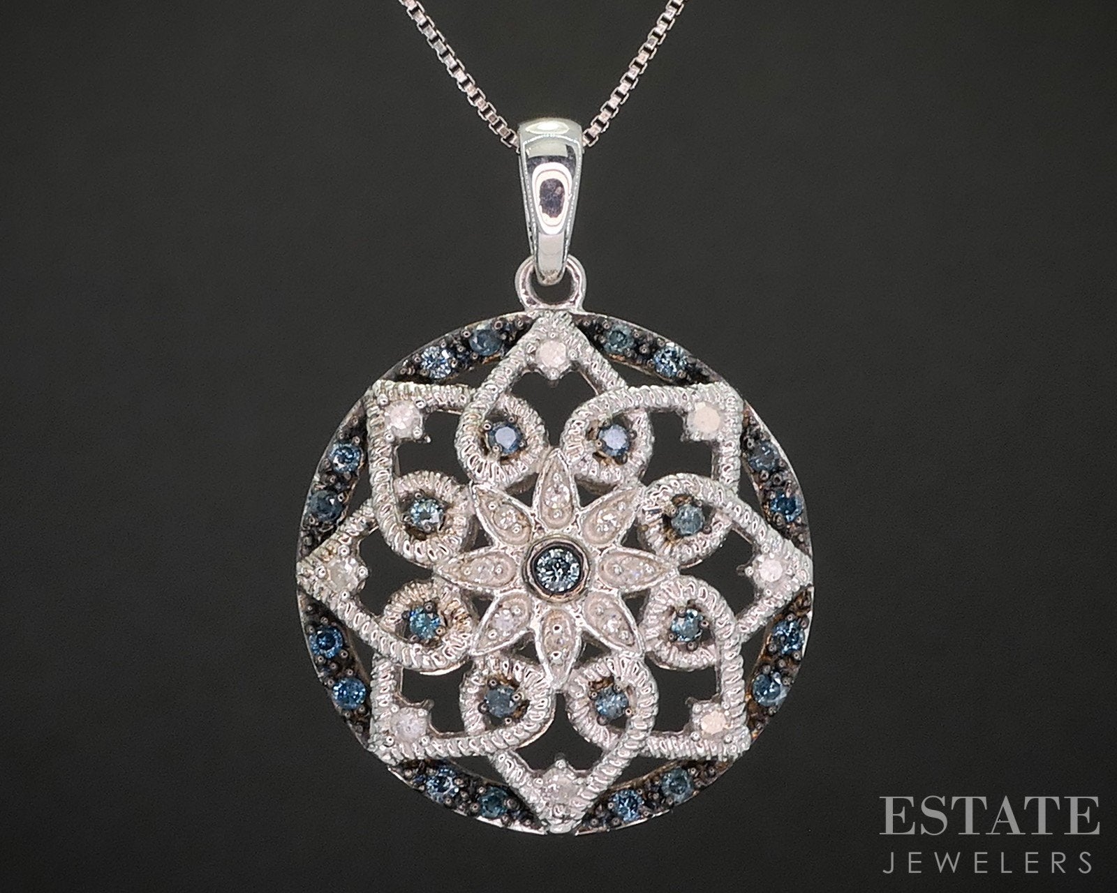 Sterling Silver Natural Blue & White Diamond Circle Necklace 6.9g 18"L p19129
