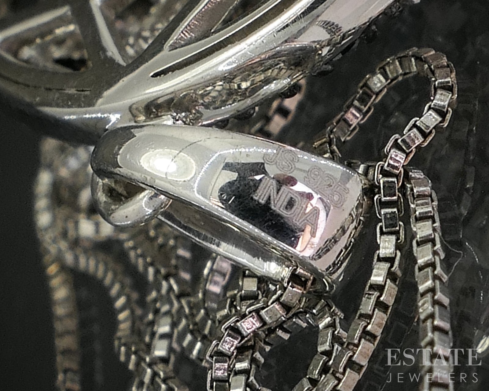 Dimensions: 18"L box chain, 1-1/4"L pendant including bail