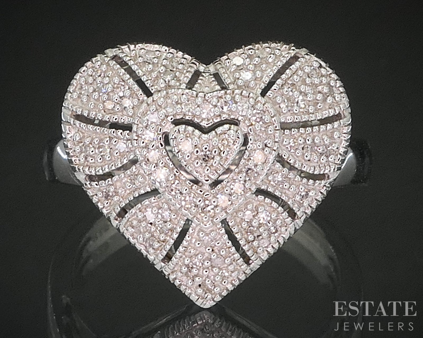 Additional Info: Lovely ladies cocktail ring with pave set Diamonds all over the heart.