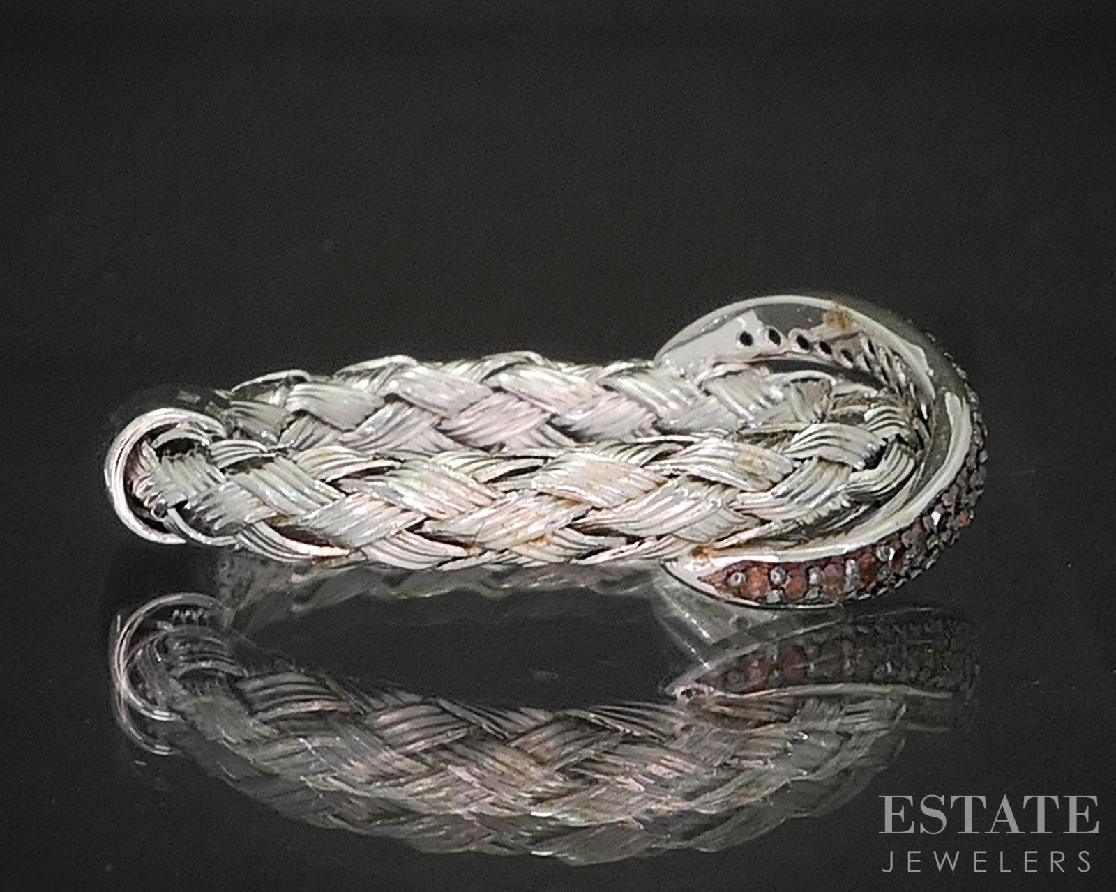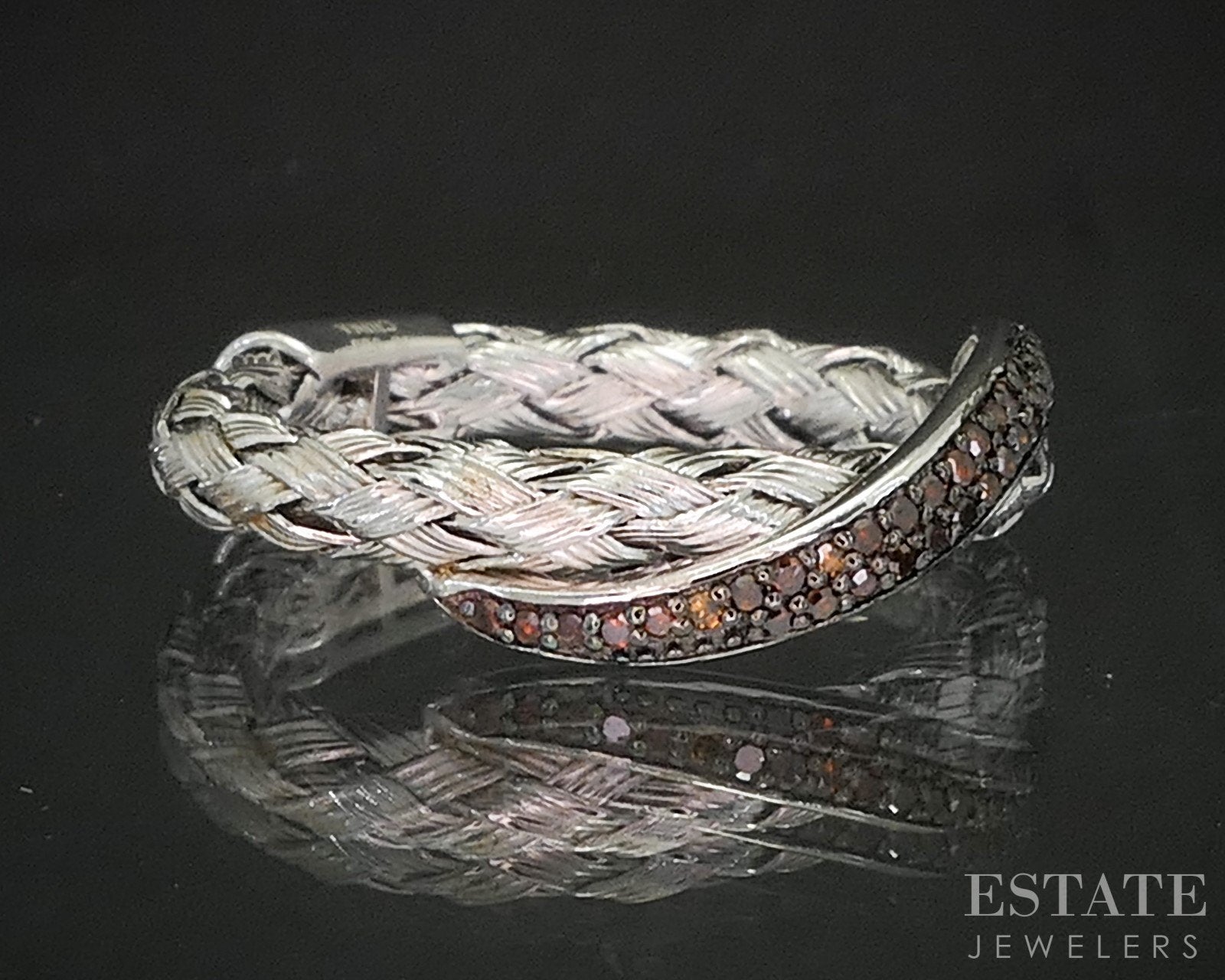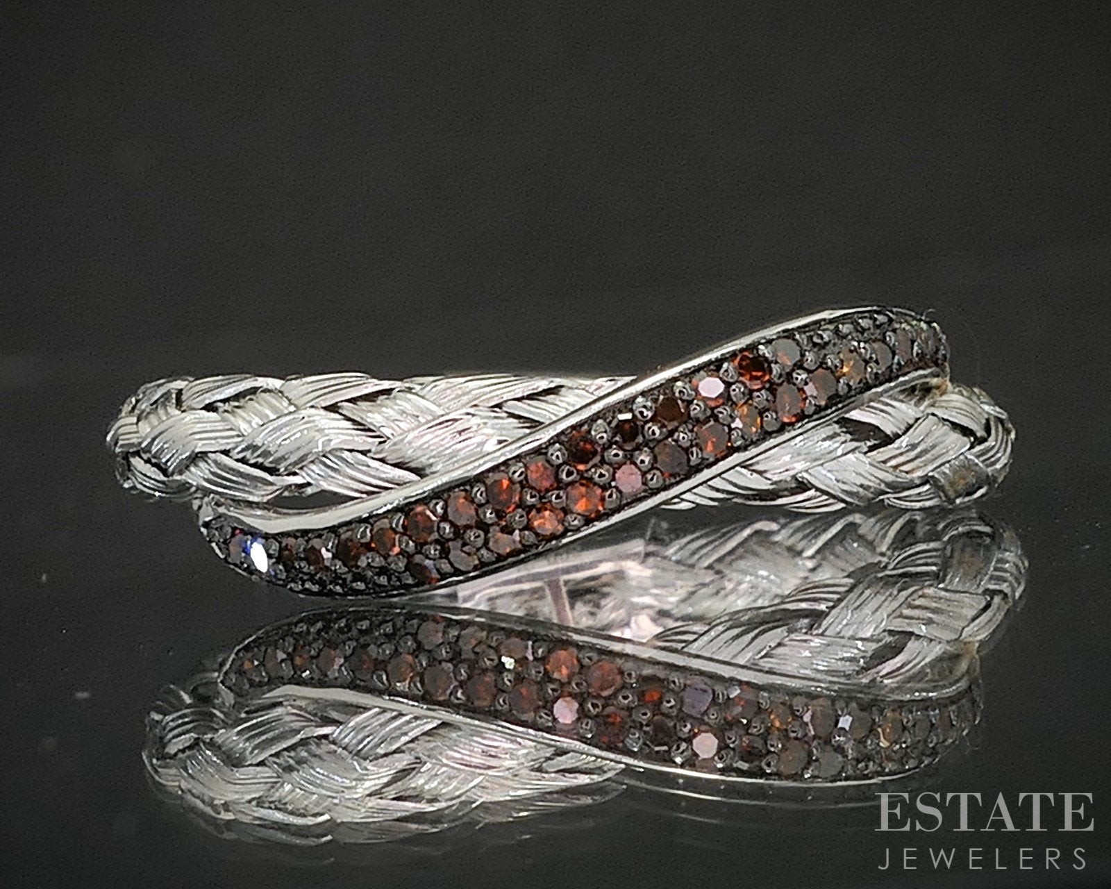 Additional Info: Lovely braided ladies band with pave set Orange Diamonds all over the front.