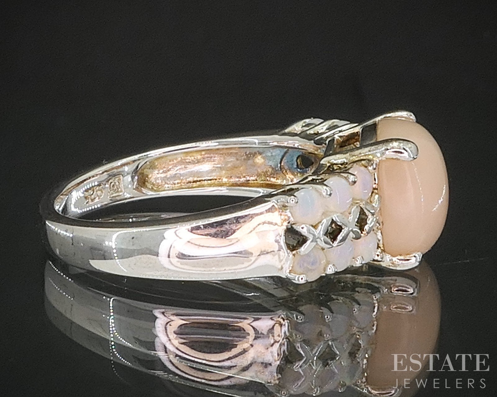 Additional Info: Lovely ladies ring with a luscious Pink Opal set in the middle and precious white Opal accents.