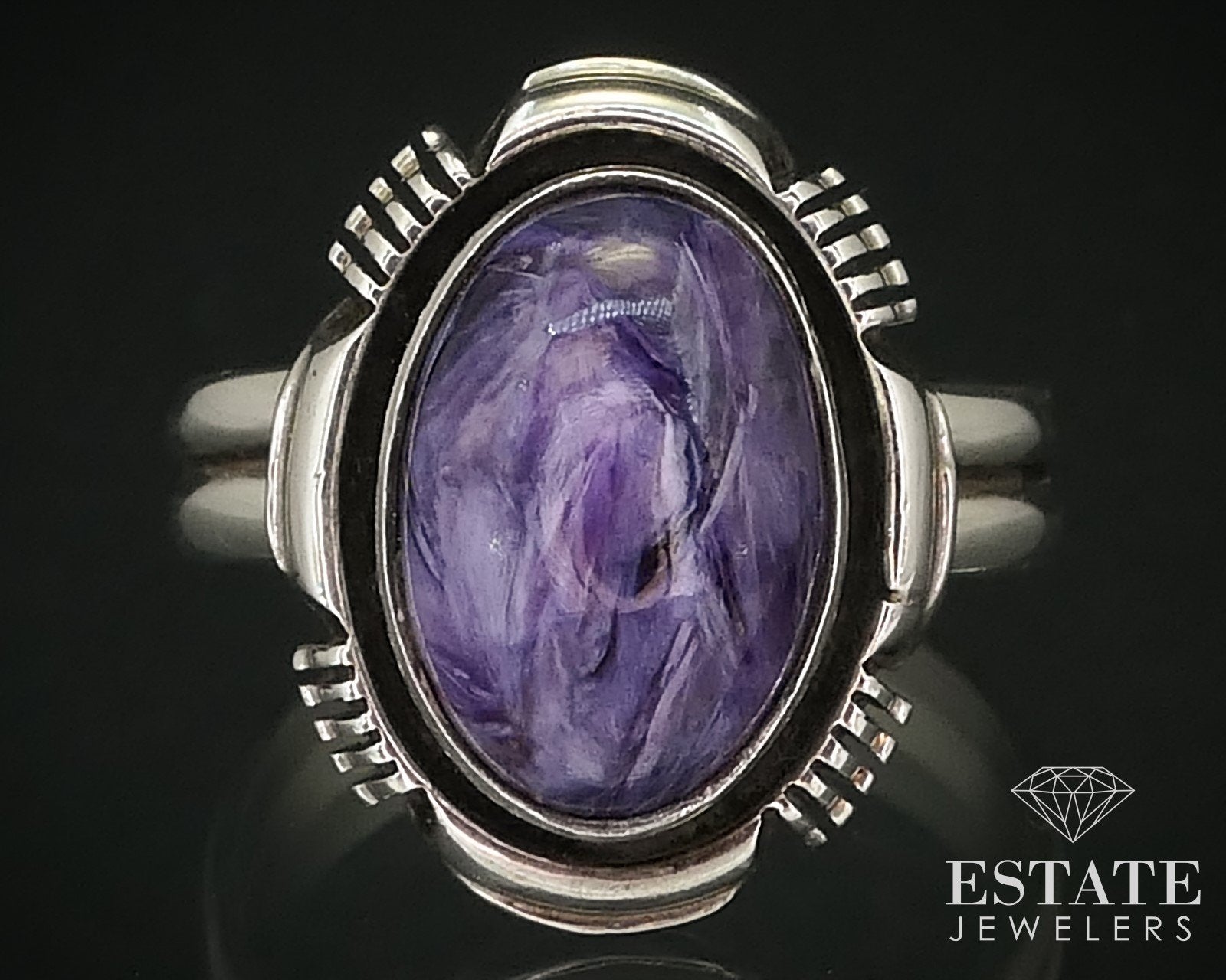 Sterling Silver Navajo L. Yazzie Purple Charoite Ladies Ring 4.8g i15935