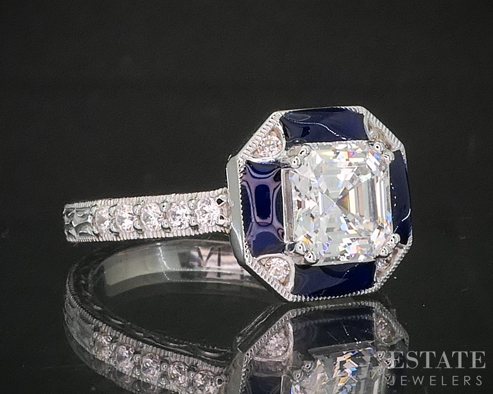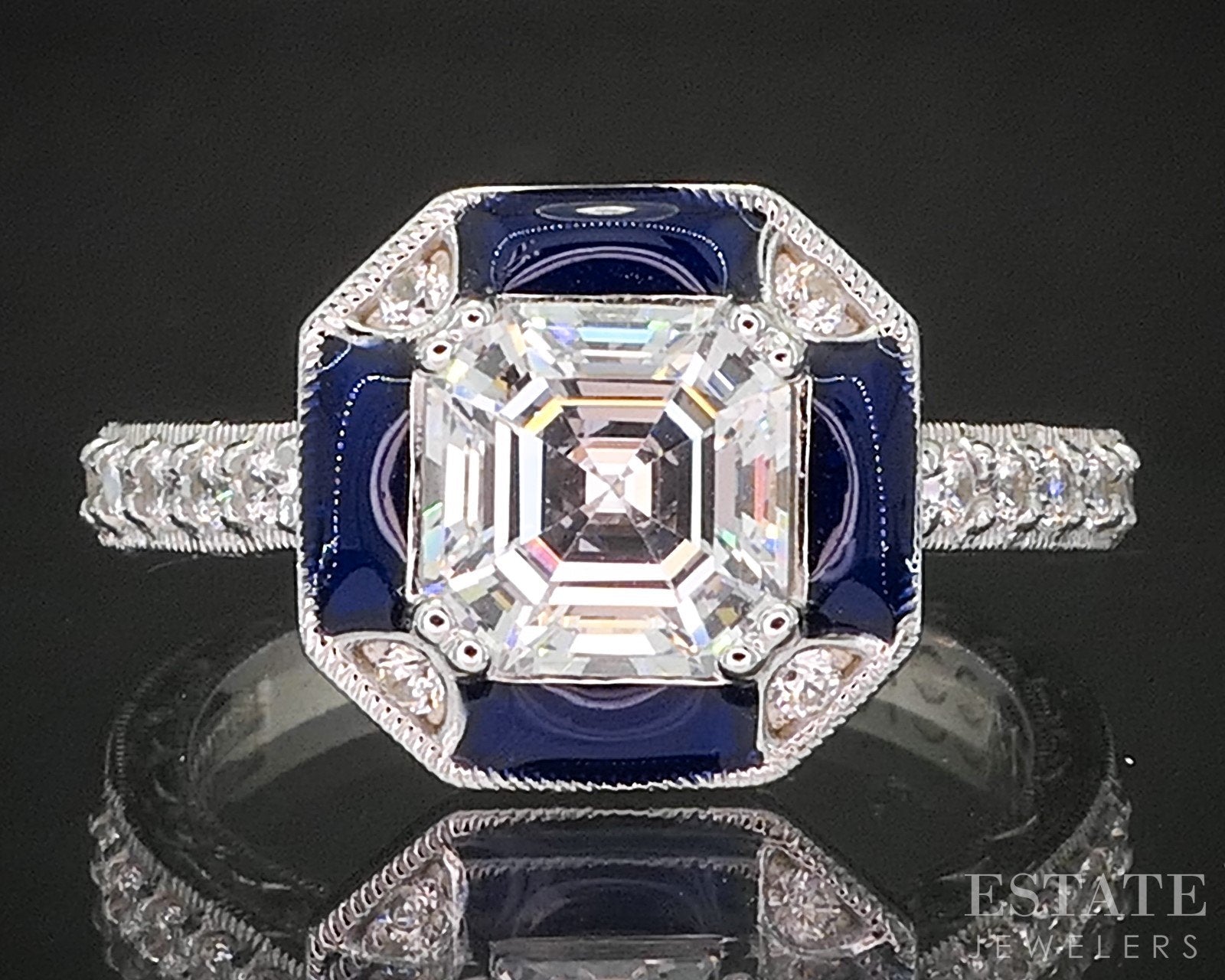Sterling Silver Tacori CZ & Blue Enameled Art Deco Engagement Ring 6.0g p18583