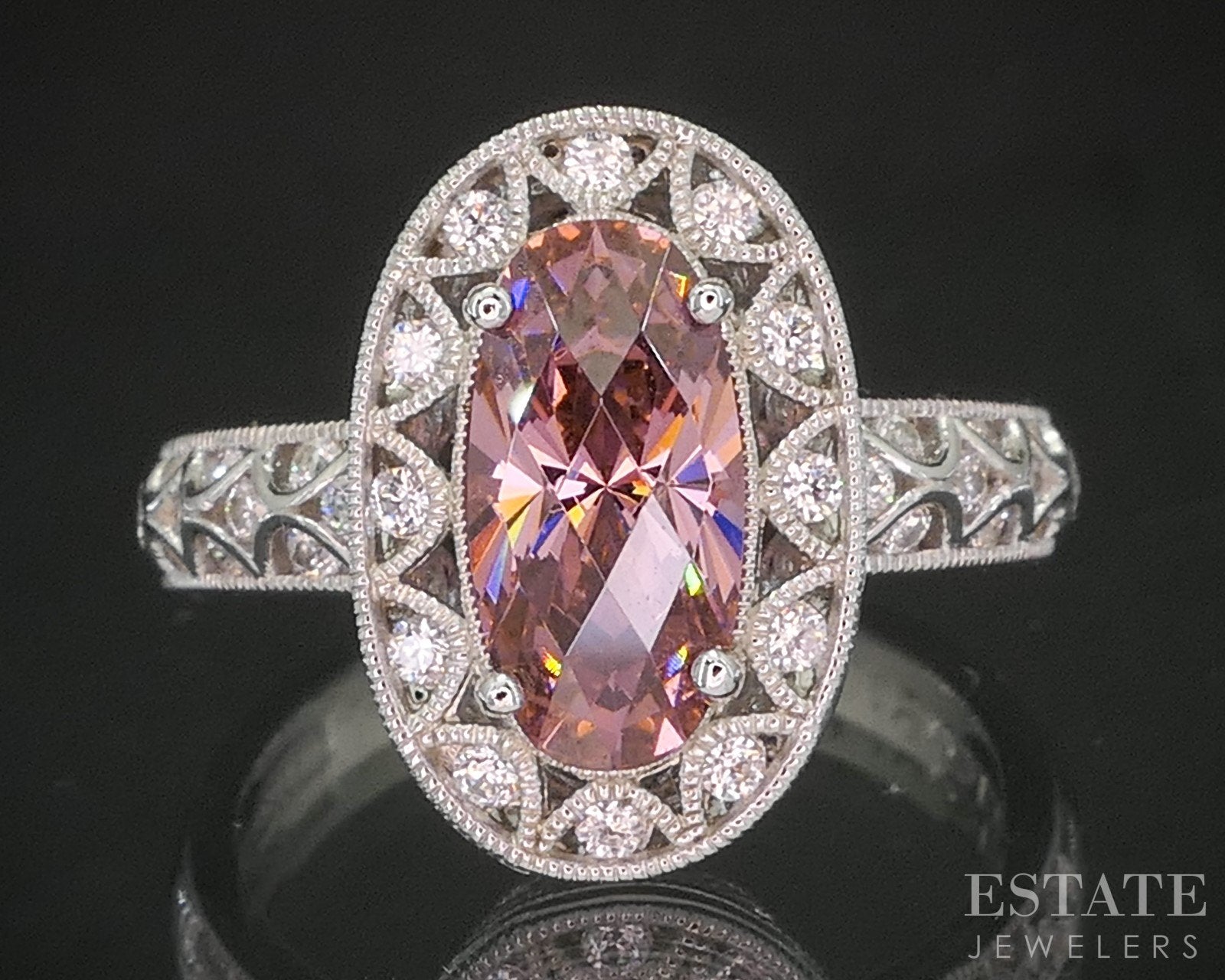 Additional Info: Lovely genuine Tacori engagement ring with a vivid pink CZ in the middle and white CZ accents!
