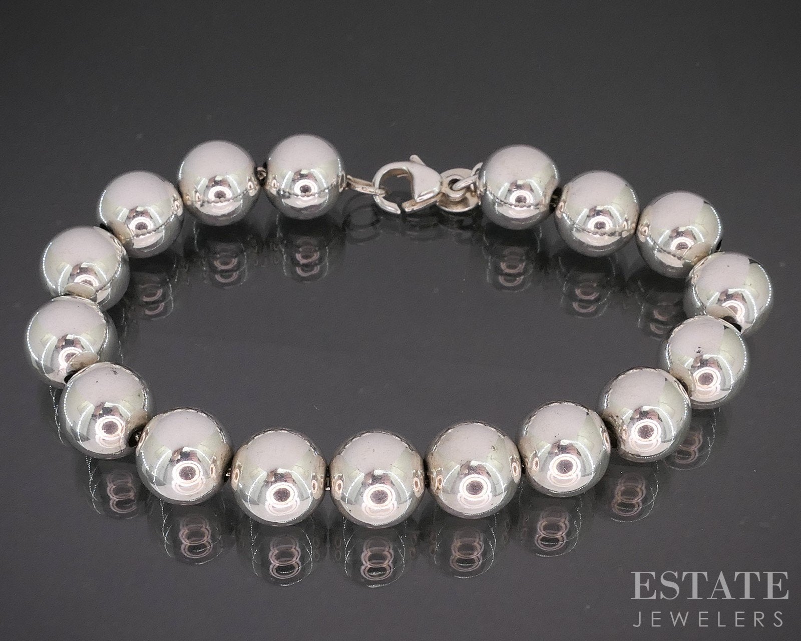 Sterling Silver Tiffany & Co. 10mm Beaded Chain Ladies Bracelet 17.9g 7"L p14964