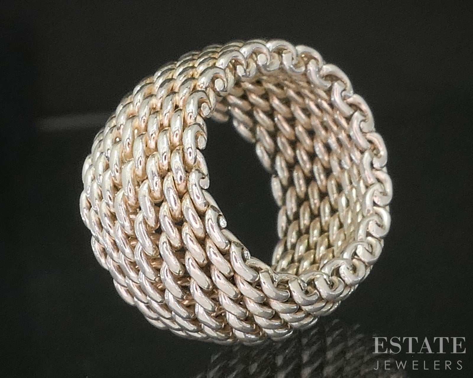 Sterling Silver Tiffany & Co. 10mm Mesh Ladies Band Ring 9g p14917