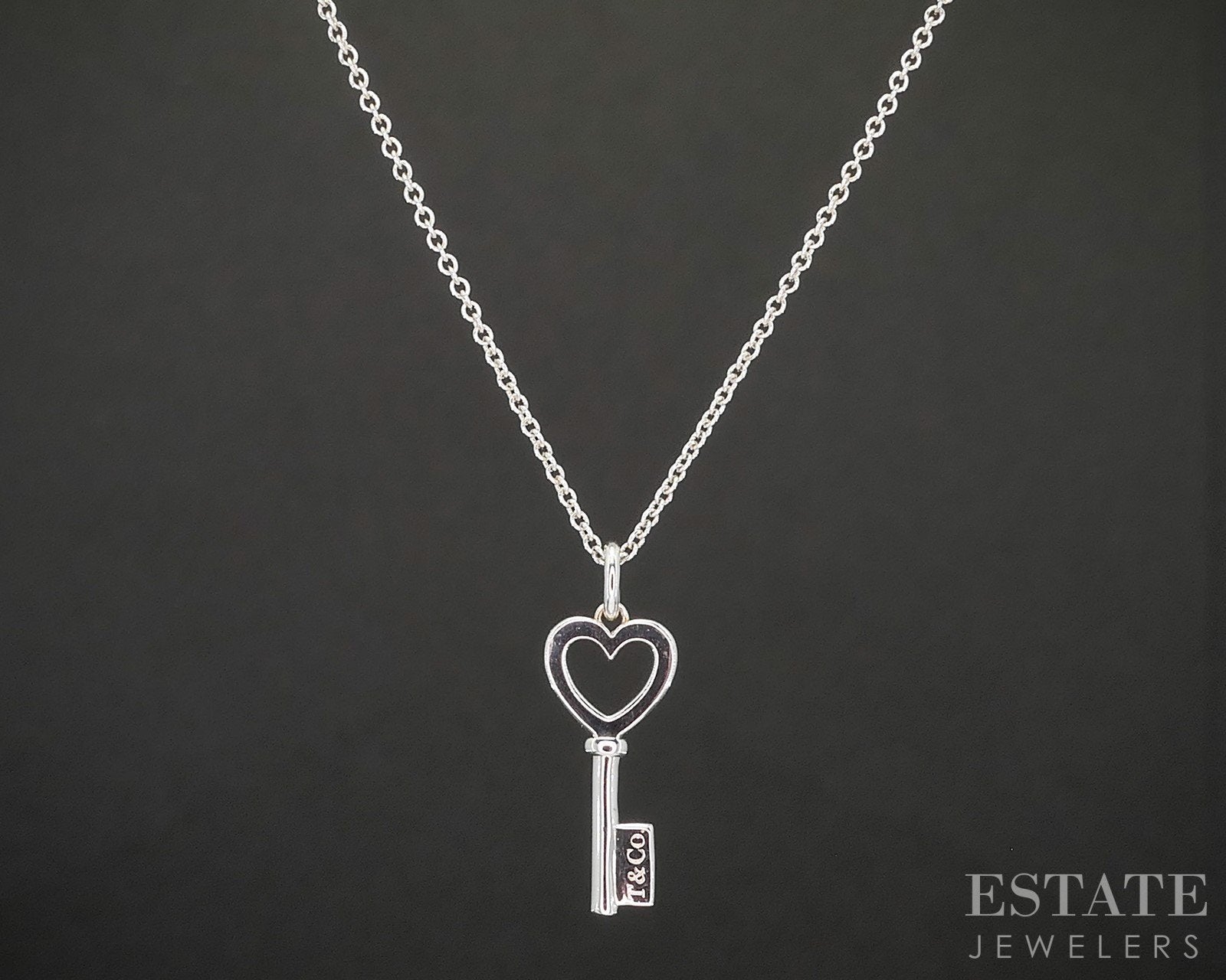Sterling Silver Tiffany & Co. Heart Skeleton Key Necklace 2.4g 16"L p14936