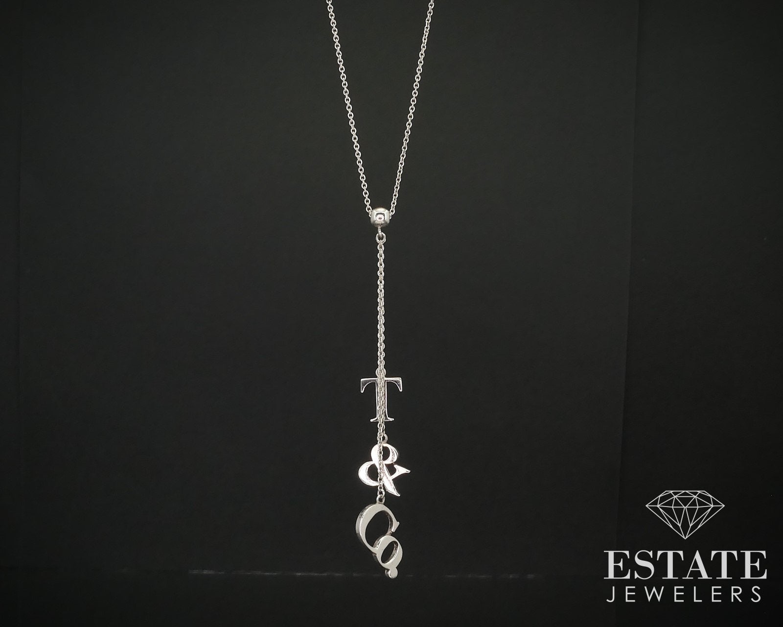 Sterling Silver Tiffany & Co Letter Logo Dangle Lariat Necklace 3.1g 16"L i16102