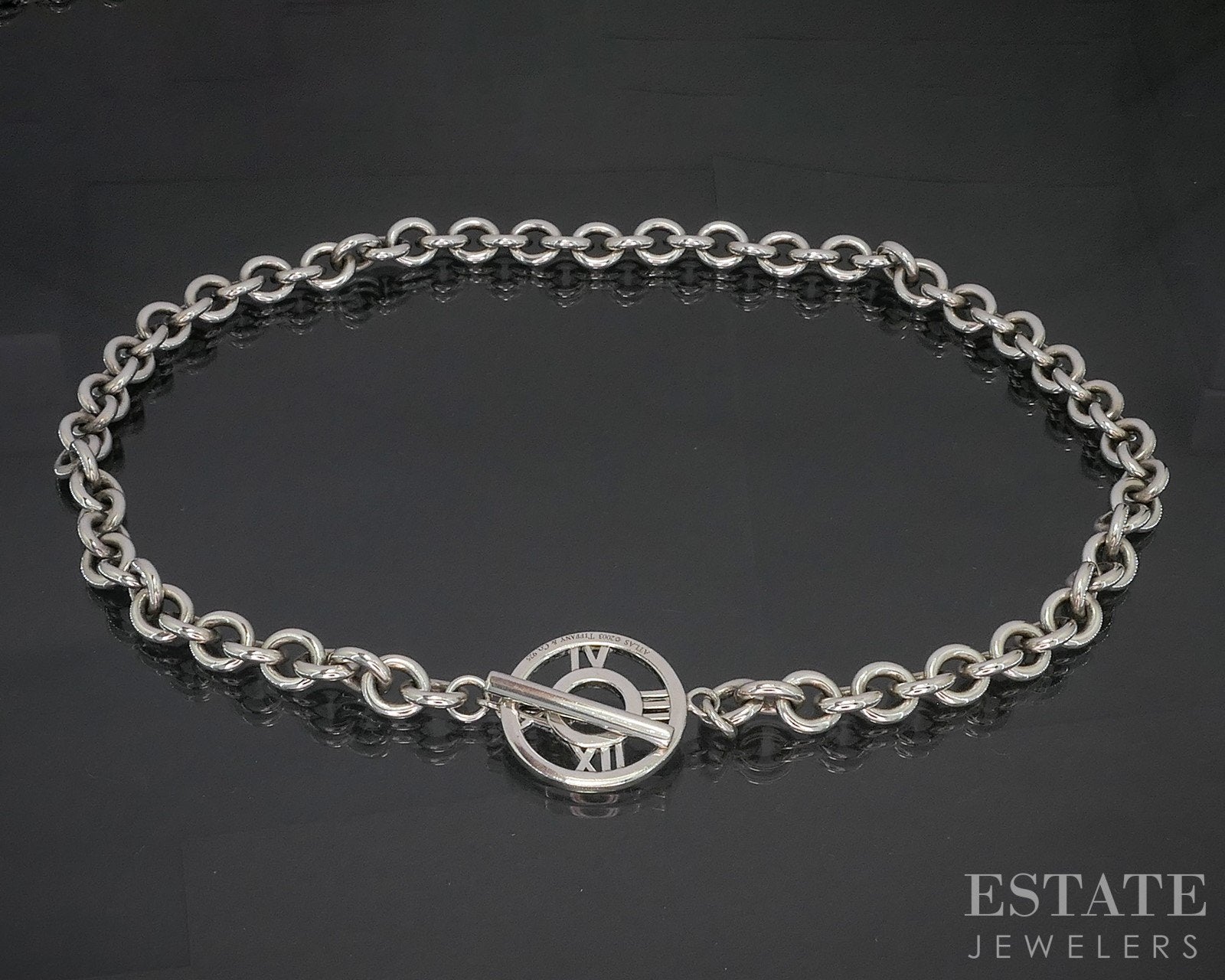 Additional Info: Early 2000's Tiffany & Co. cable chain necklace with the open Atlas toggle clasp on the end.