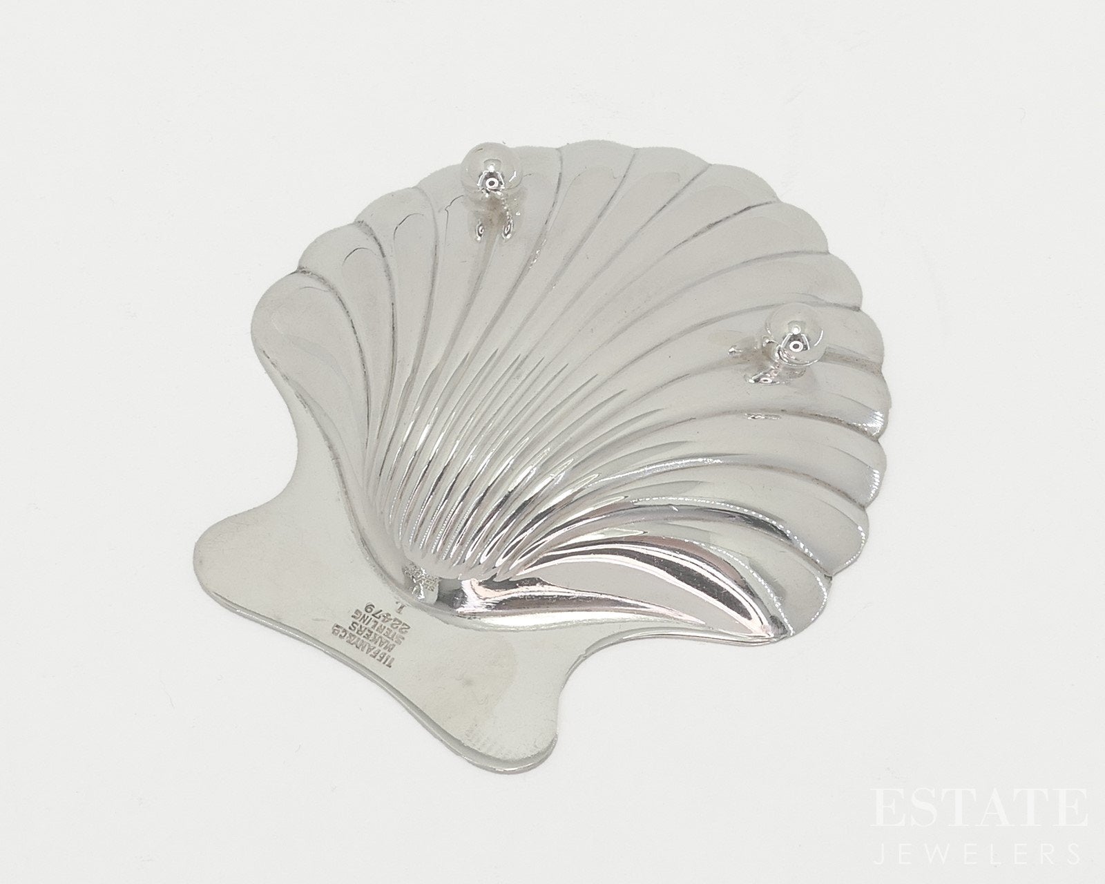 Additional Info: Genuine mid-century Tiffany & Co. dish with a smooth finish and no monogram! Shell shaped with a footed base.