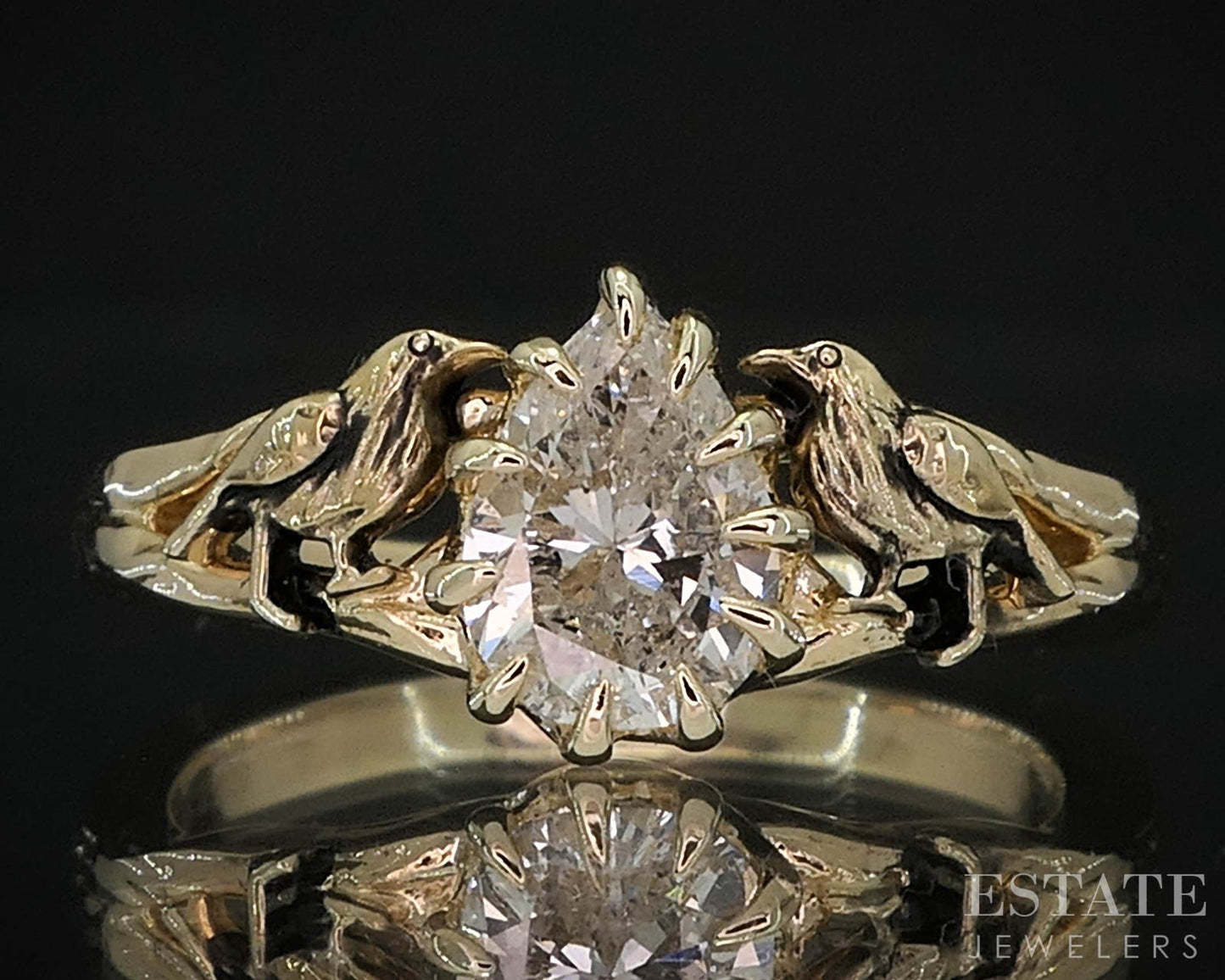 Custom 14k Yellow Gold Pear Natural .67ct Diamond Bird Solitaire Ring i19660