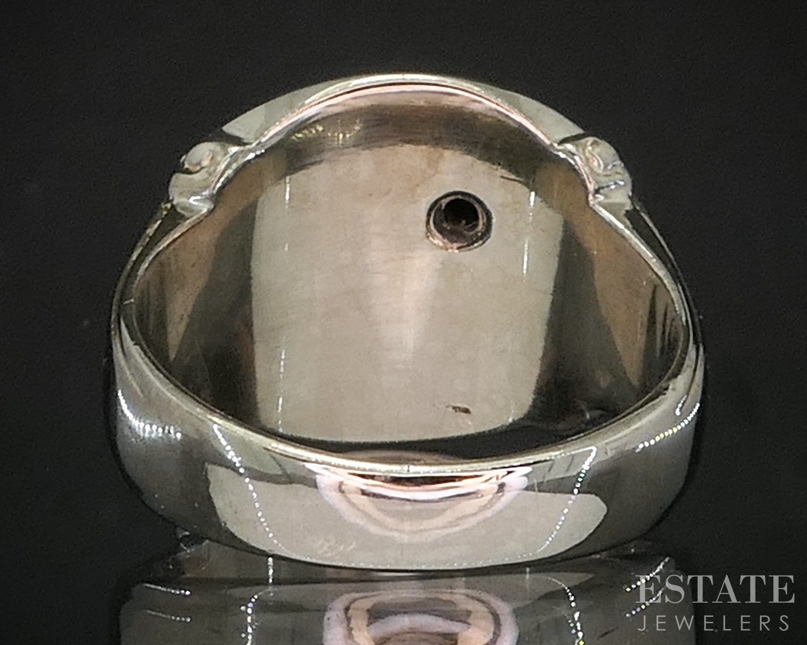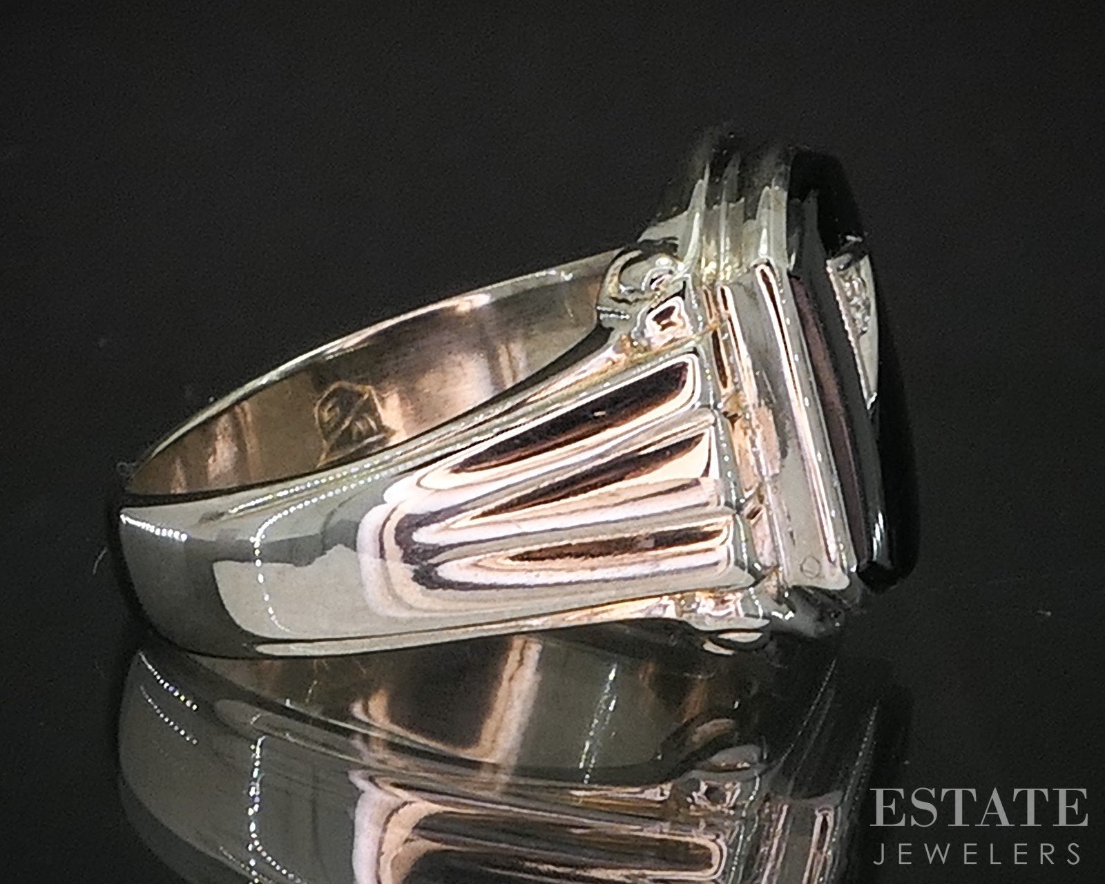 Vintage 10k White Gold Natural Black Onyx & Diamond Mens Ring 7.4g i20266