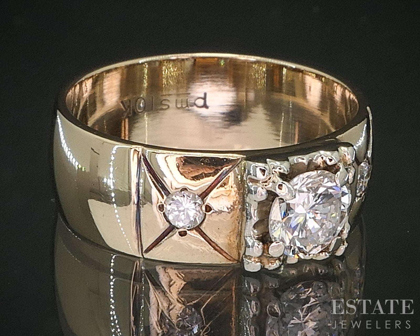 Vintage 10k Yellow Gold Natural .58ctw Diamond Three-Stone Band 5.6g i20294
