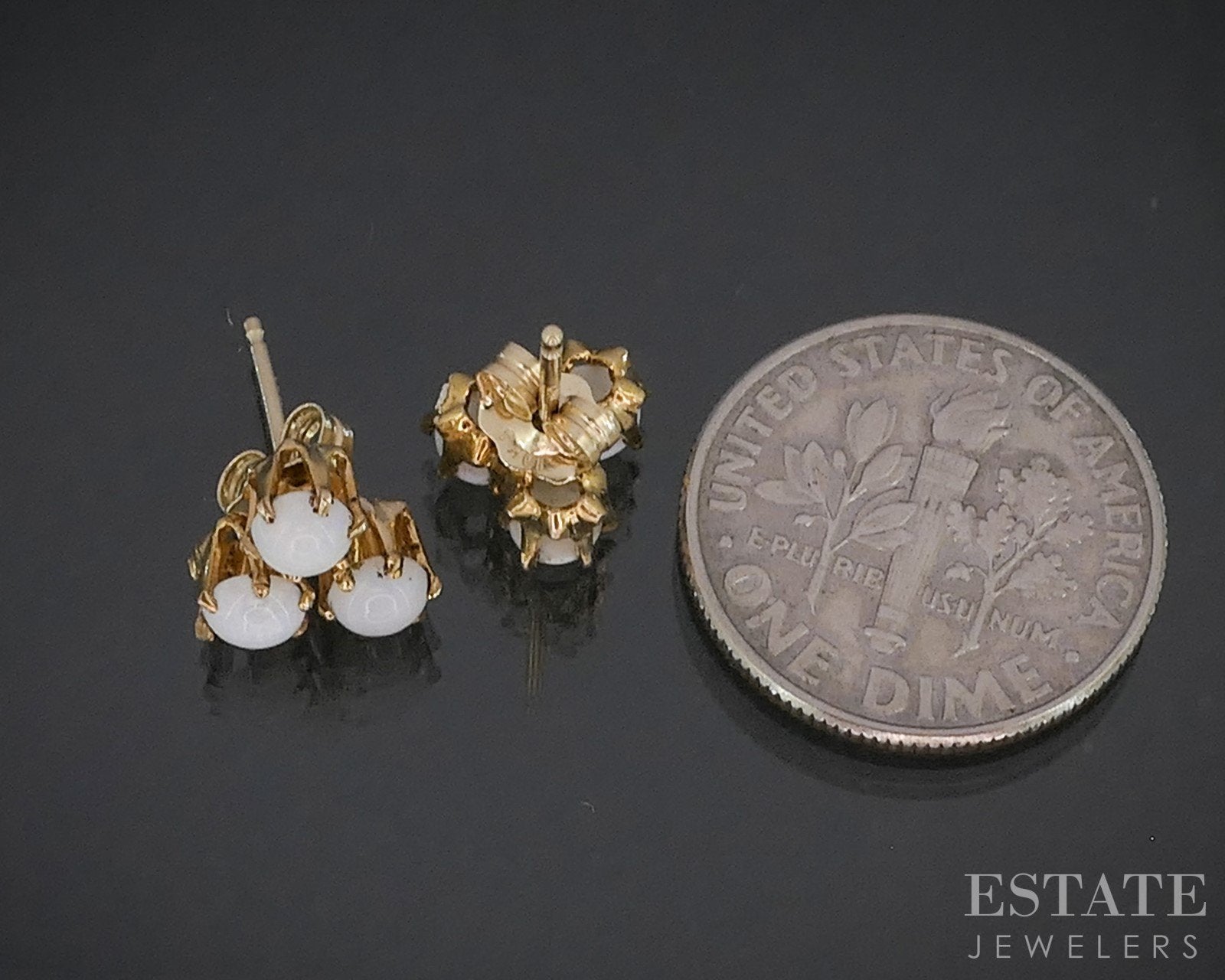 Additional Info: Lovely stud earrings with a cluster cabochon Opals set on the front.