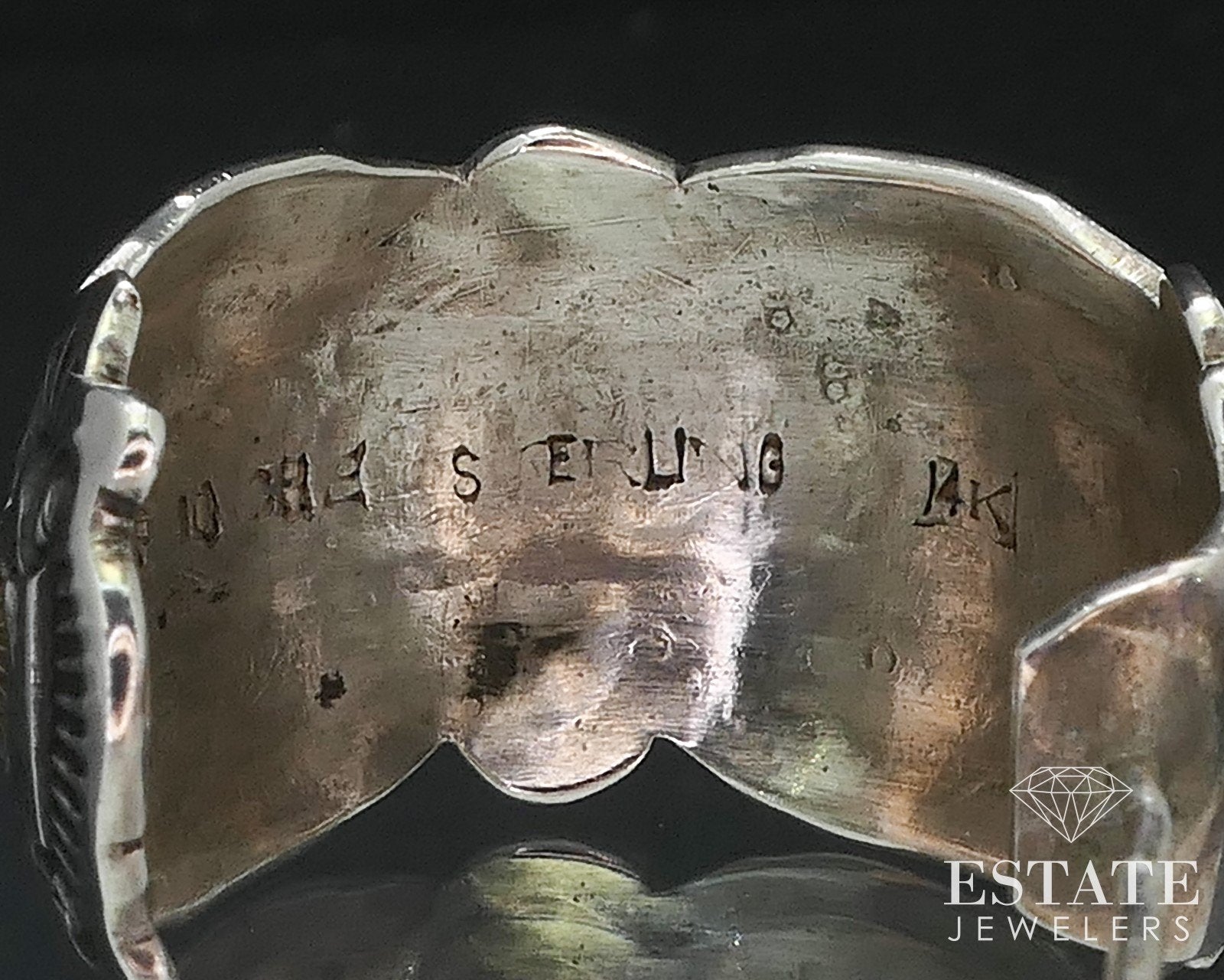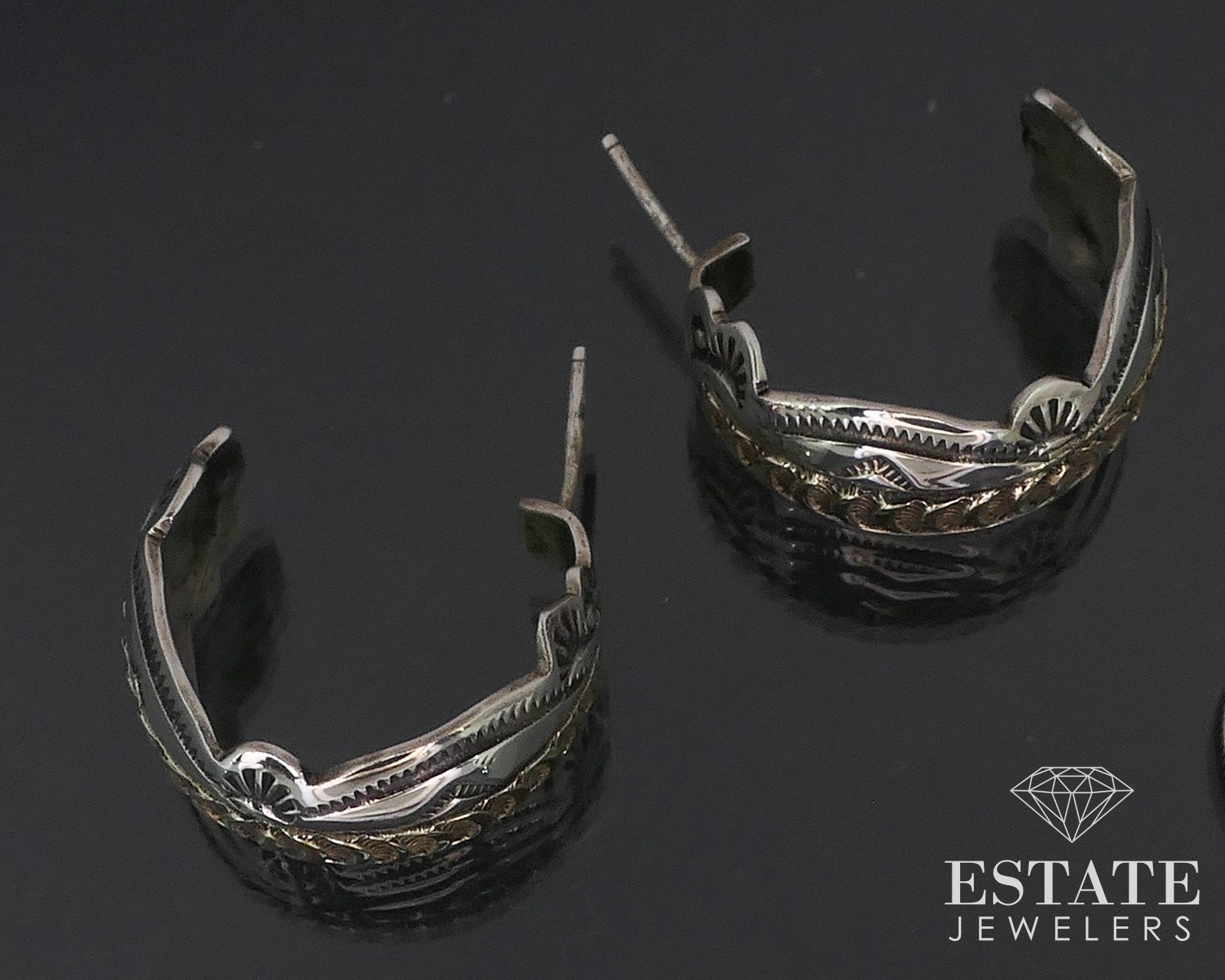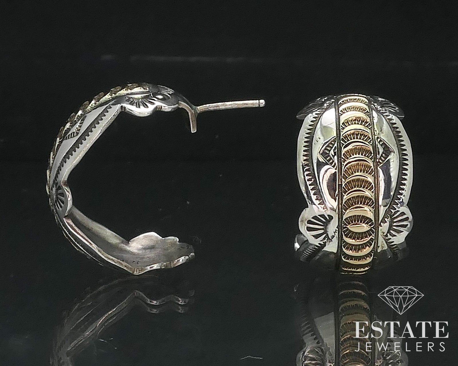 Vintage 14k & Sterling James Pioche Navajo Half Hoop Earrings 9.8g i17336
