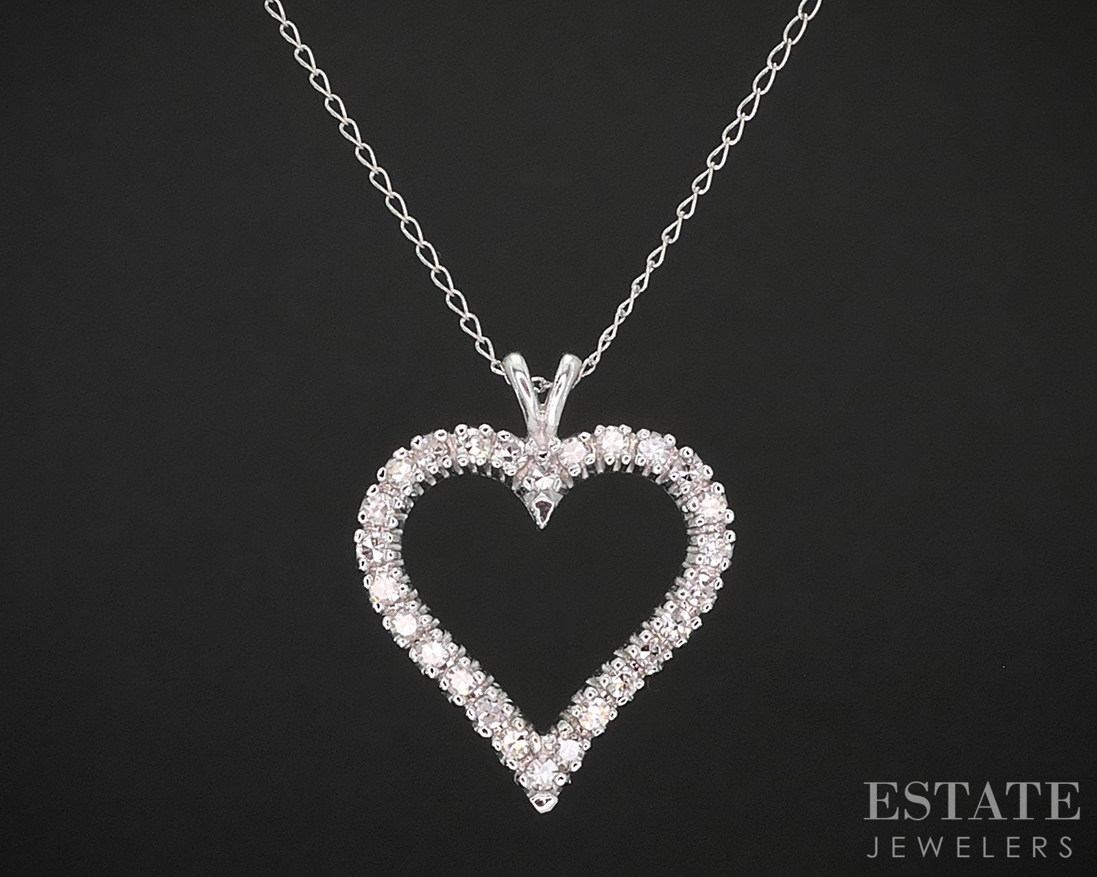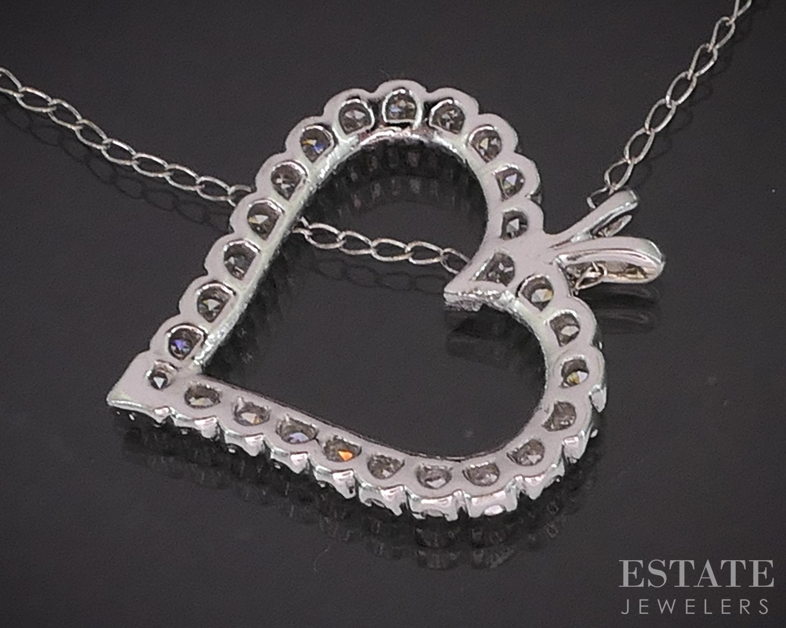 Vintage 14k White Gold Natural .35ctw Diamond Heart Necklace 2.7g 18"L p83440