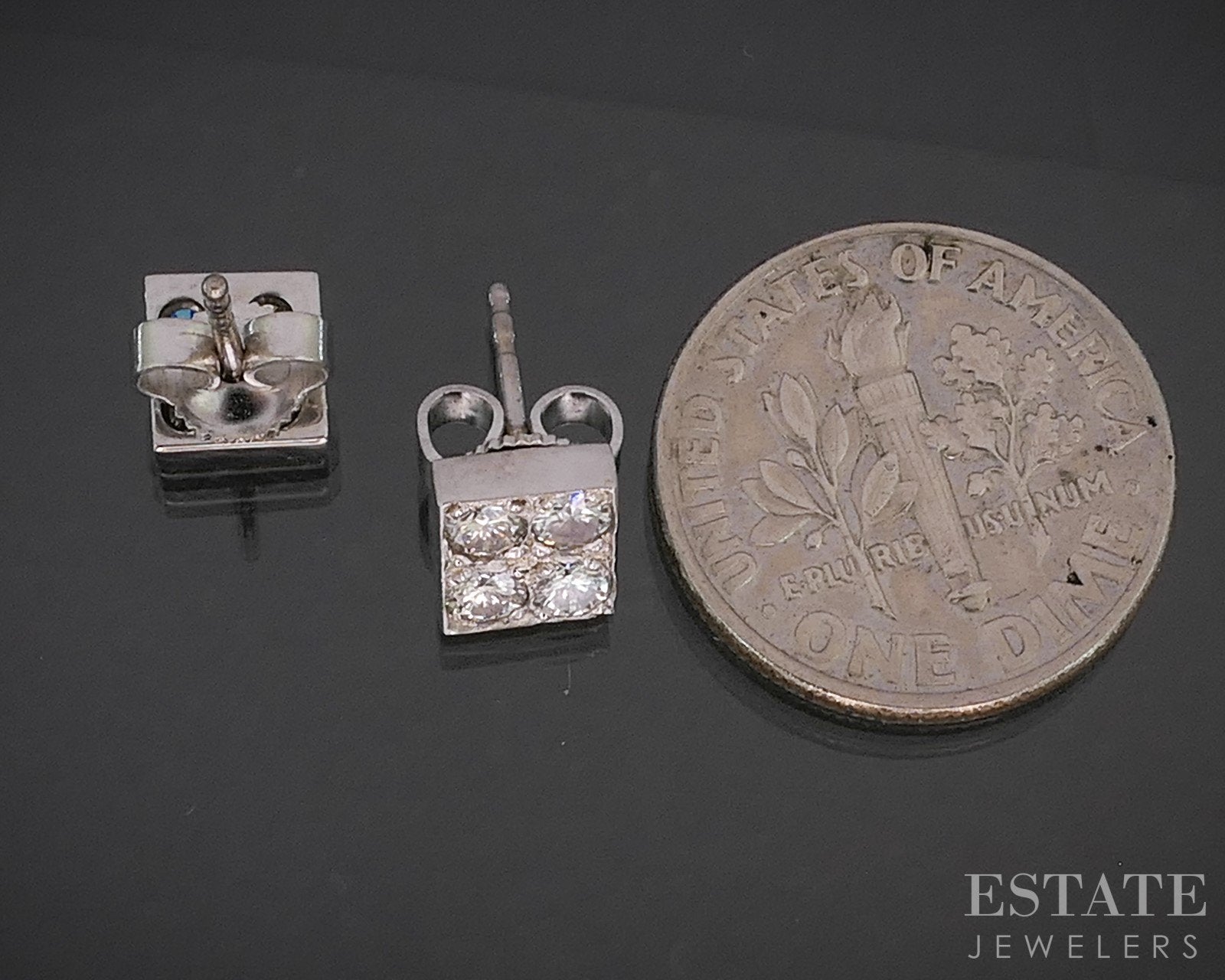 Vintage 14k White Gold Natural .40ctw Diamond Cluster Stud Earrings 1.9g p15381