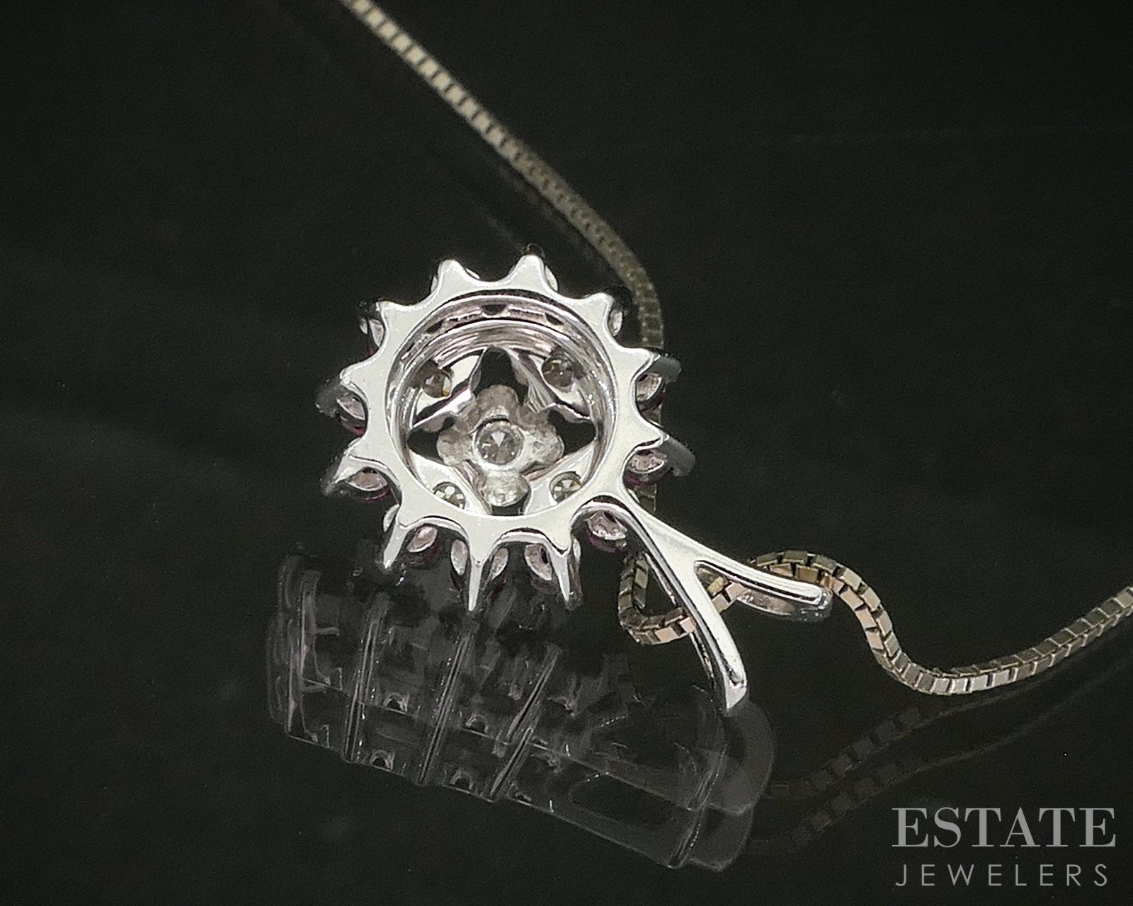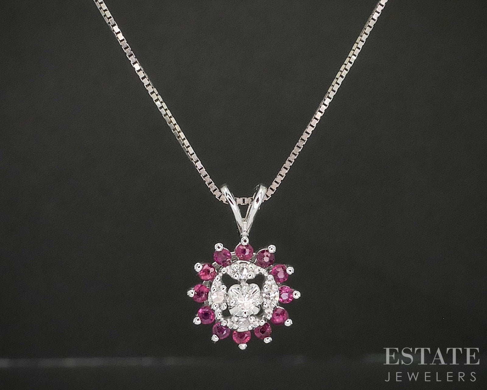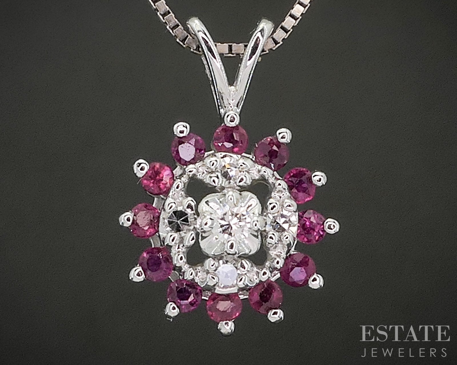 Vintage 14k White Gold Natural Ruby & Diamond Halo Necklace 2.6g 18"L p18563b